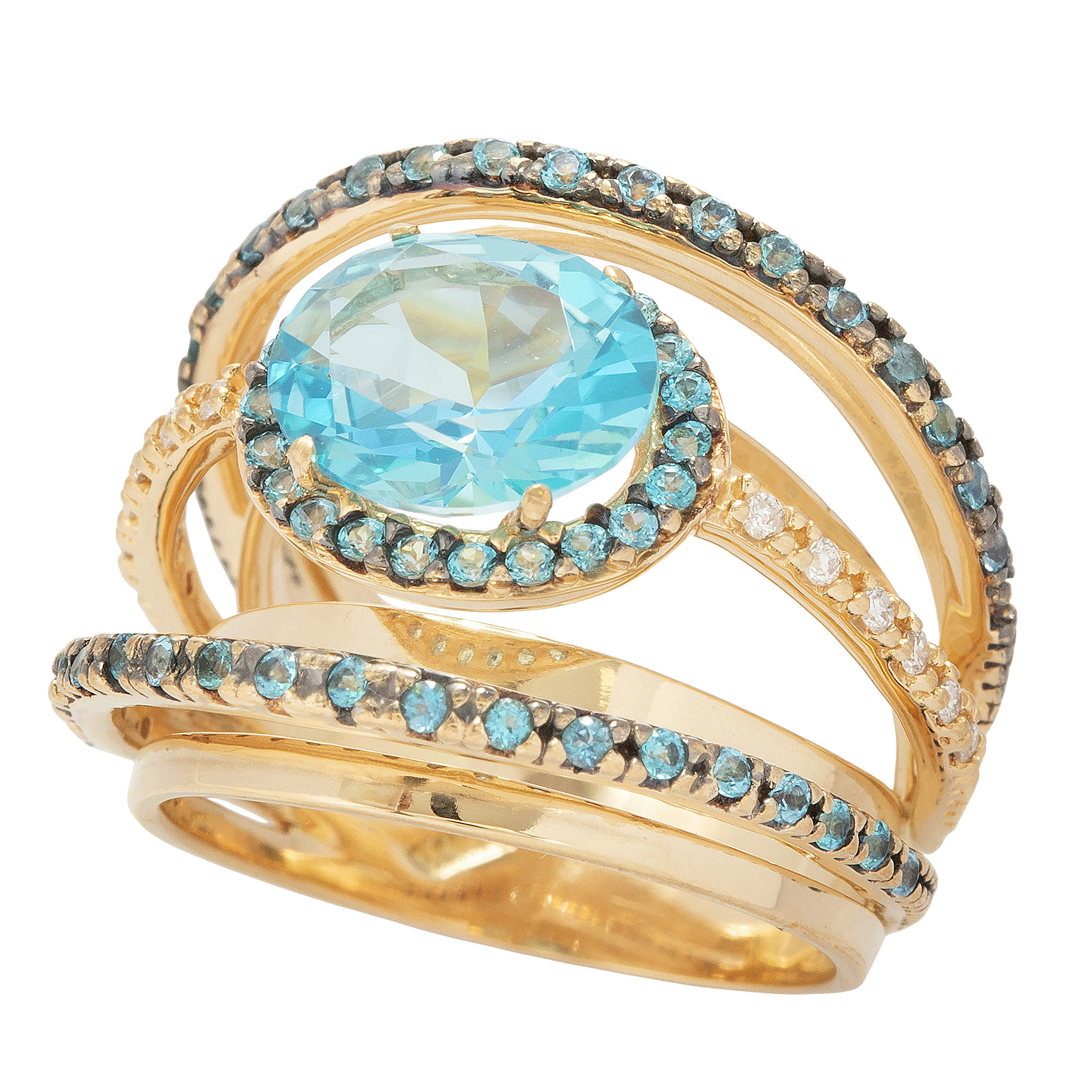 Anel de ouro amarelo com topázios, 0,12ct de brilhantes e 10,0g. Medida 15.