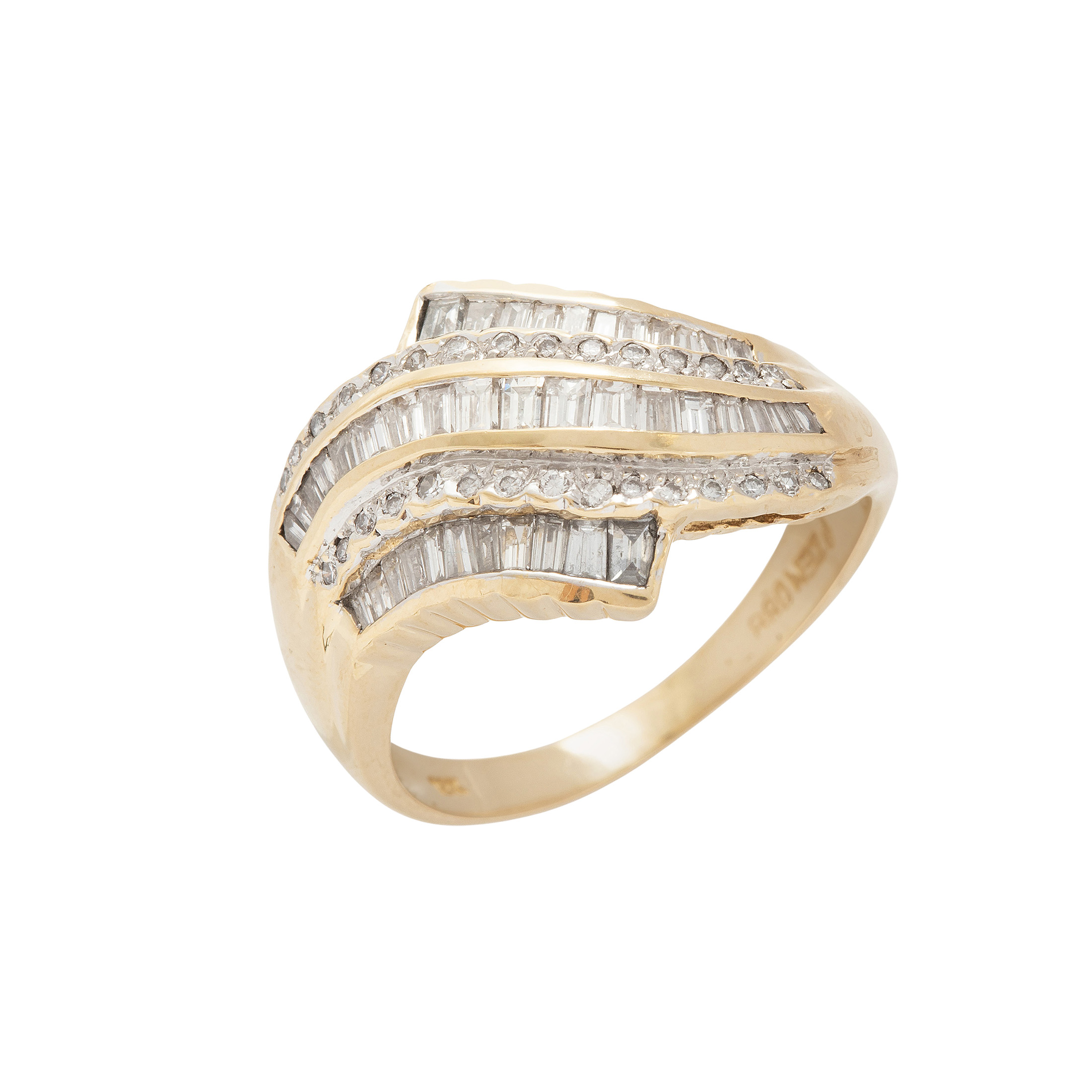 Anel de ouro amarelo com 1,00ct de diamantes (sendo 0,10ct de lapidação brilhante/0,90ct de lapidação baguete). Medida 18.