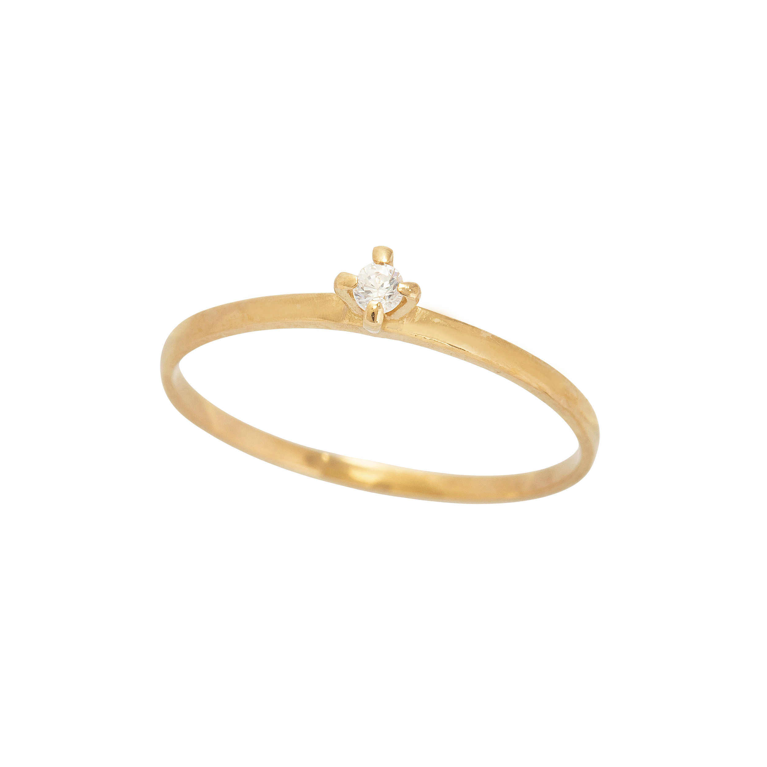 Anel solitário de ouro amarelo com 0,04ct de brilhante. Medida 14.