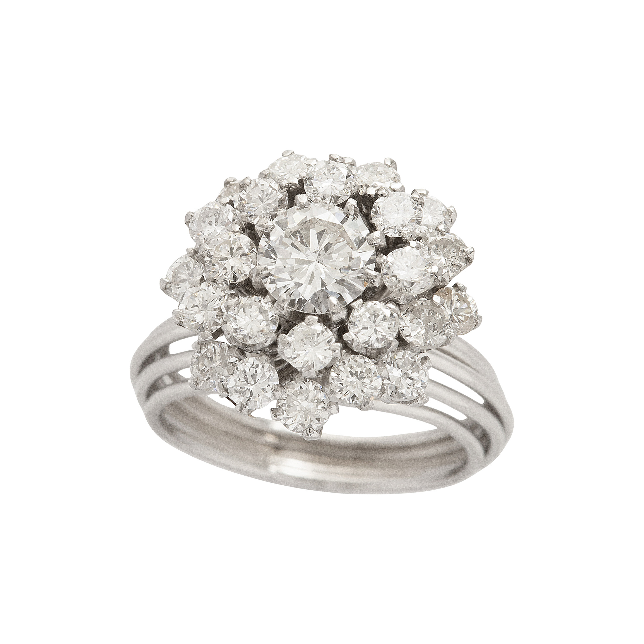 Anel chuveiro de platina com 2,20ct de brilhantes I/SI e 8,6g. Medida 12.