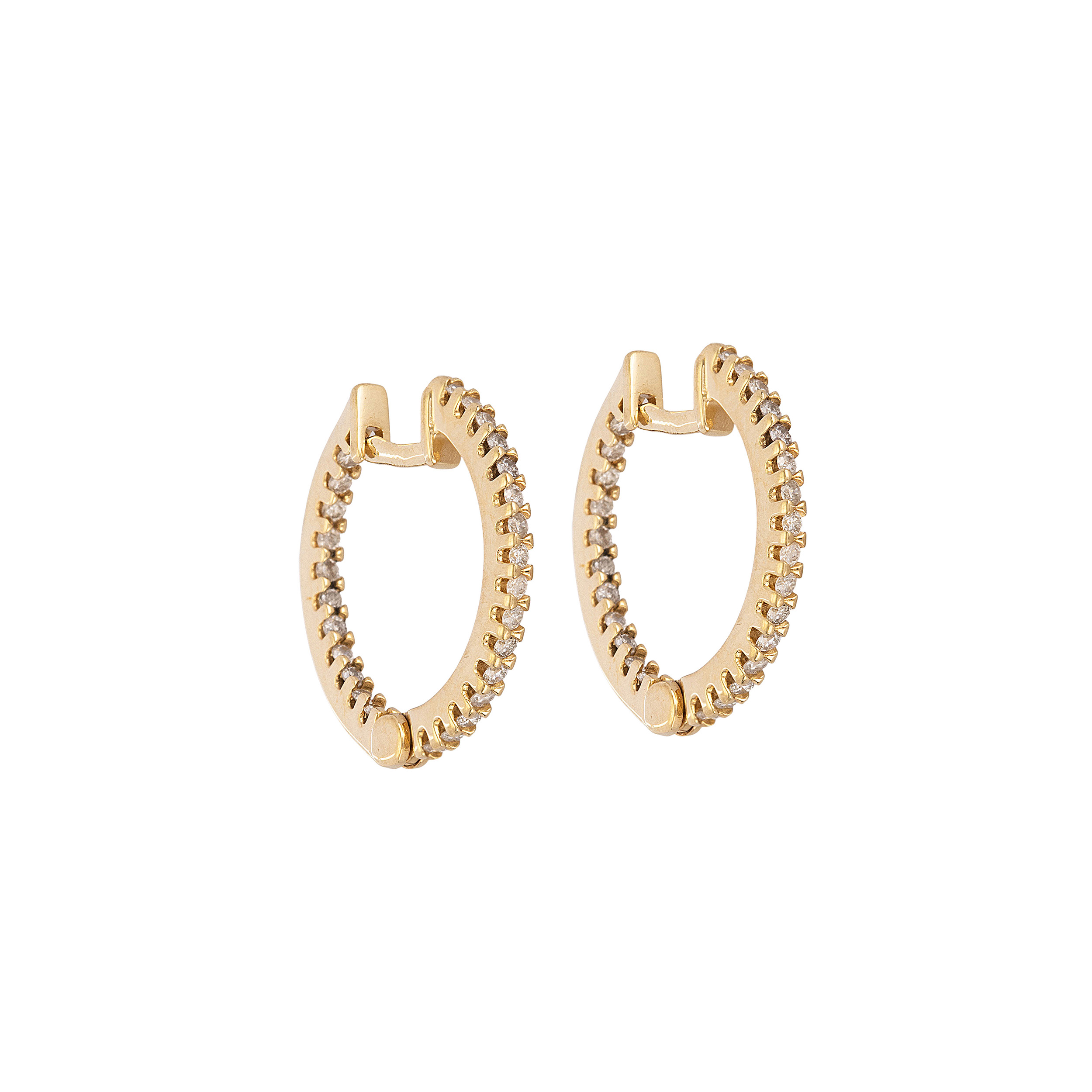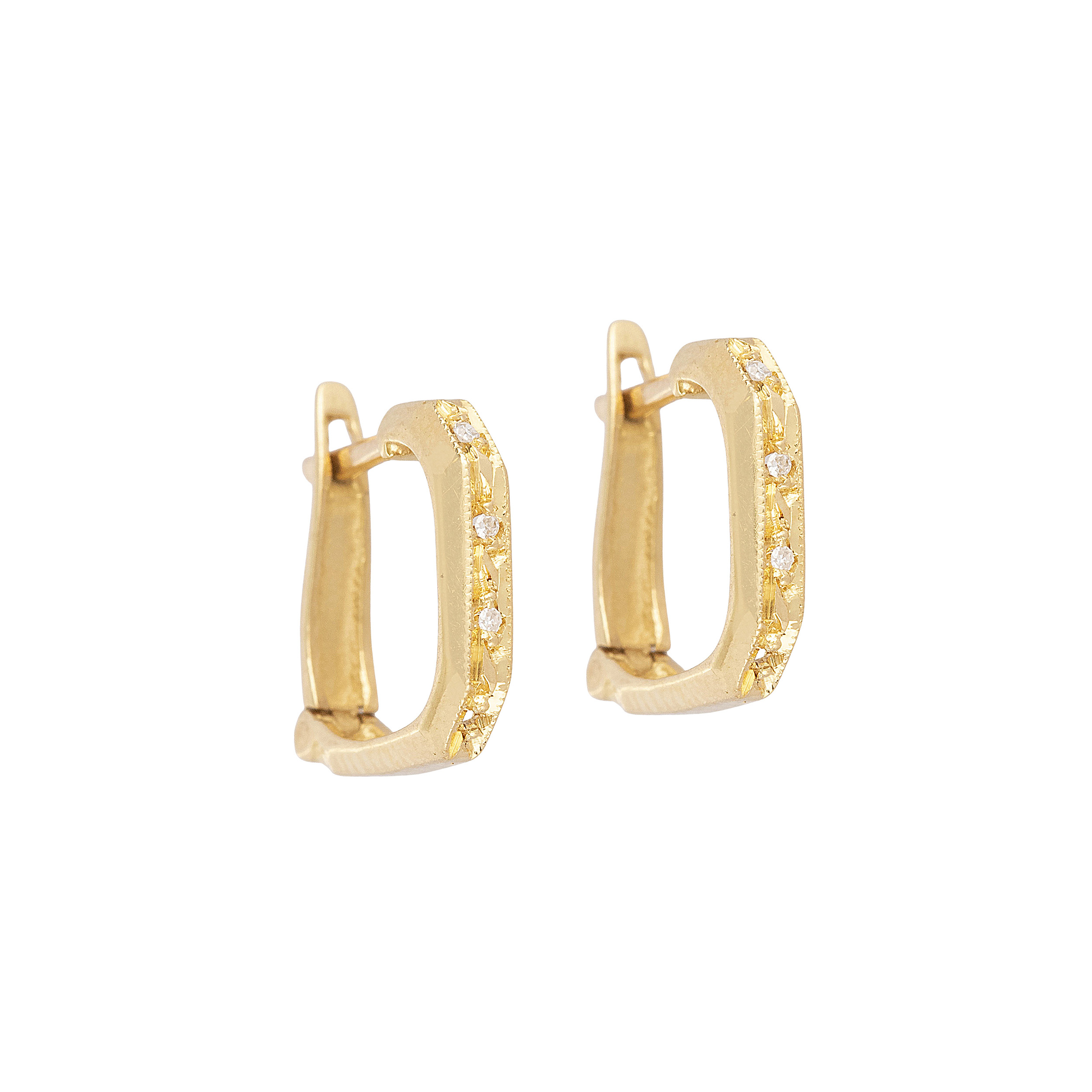 Brinco de ouro amarelo com 0,03ct de brilhantes. Medida 1cm.