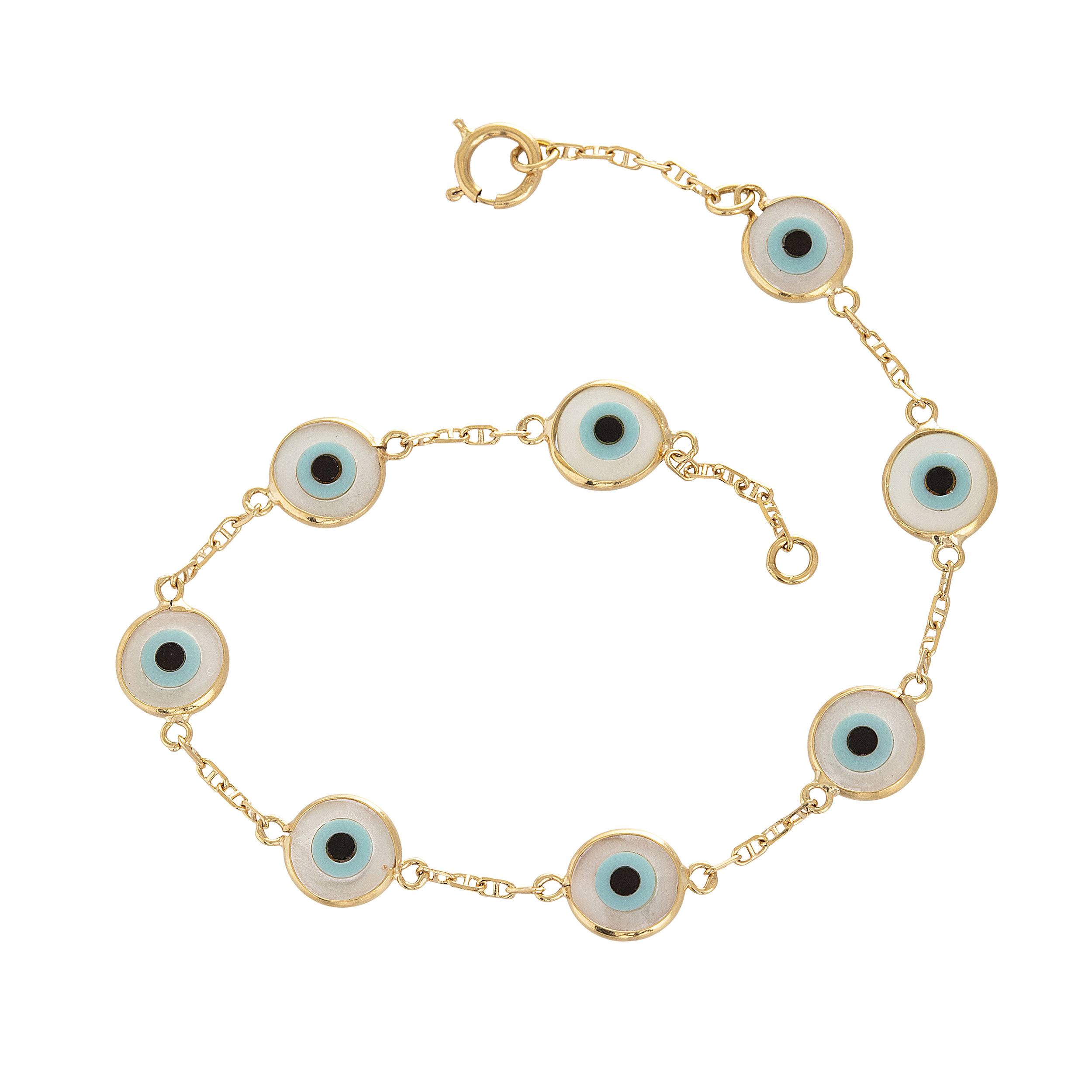 Pulseira de ouro amarelo com madrepérolas. Medida 18cm.