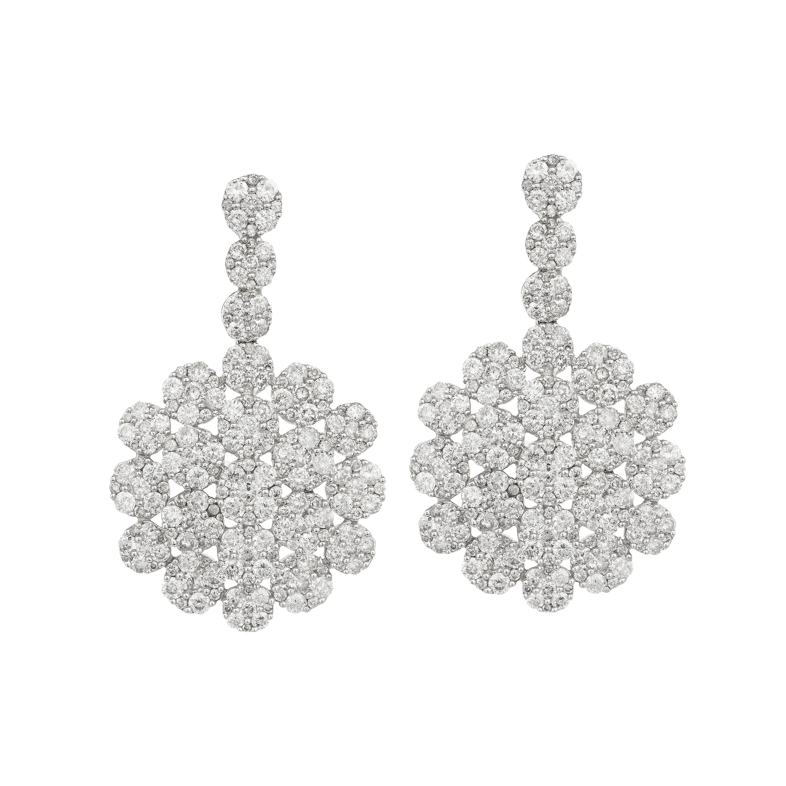 Brinco de ouro branco com 7,50ct de brilhantes I/SI-I1 e 12,4g. Medida 4cm.