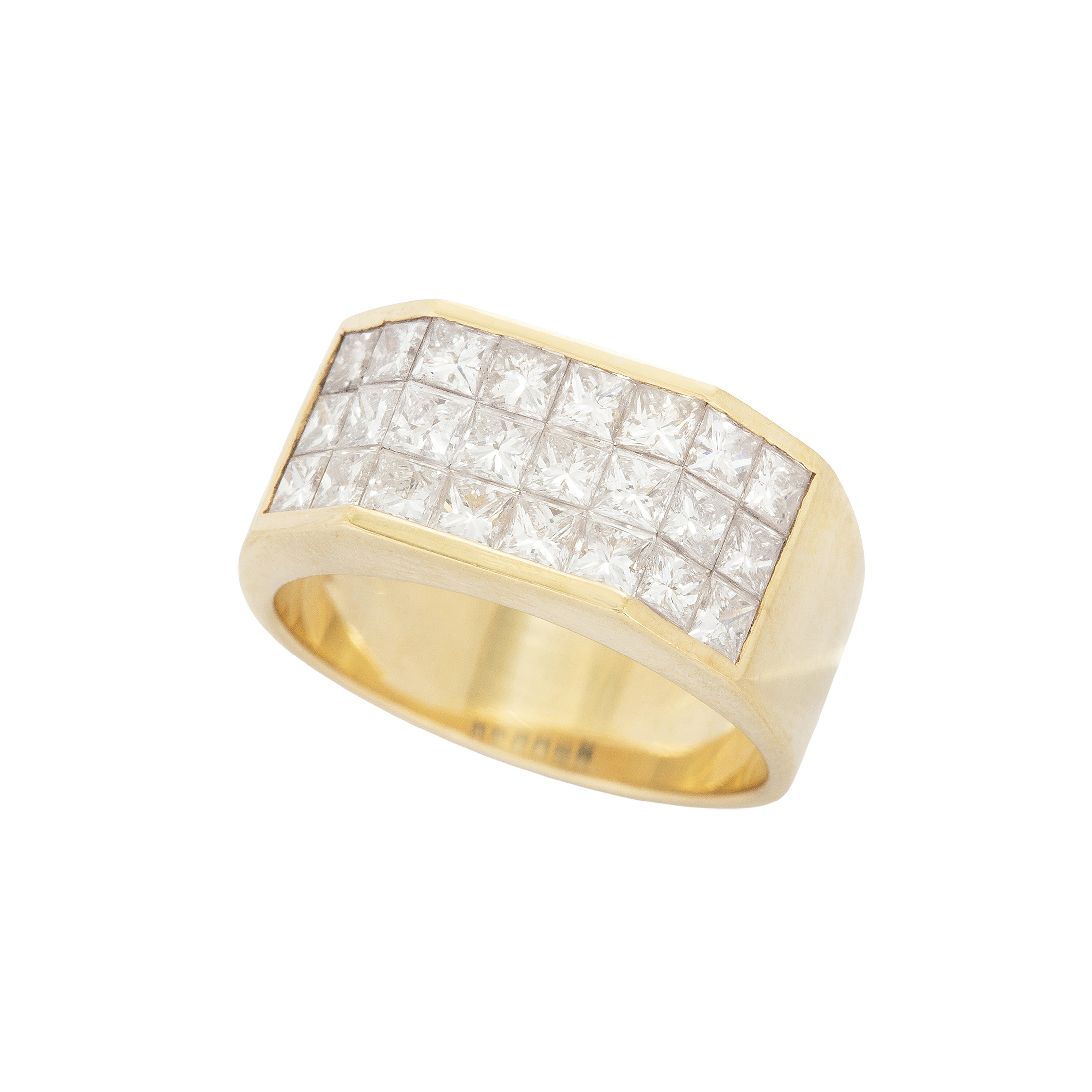Anel de ouro amarelo com 1,92ct de diamantes lapidação princess H/SI e 10,7g. Medida 16.