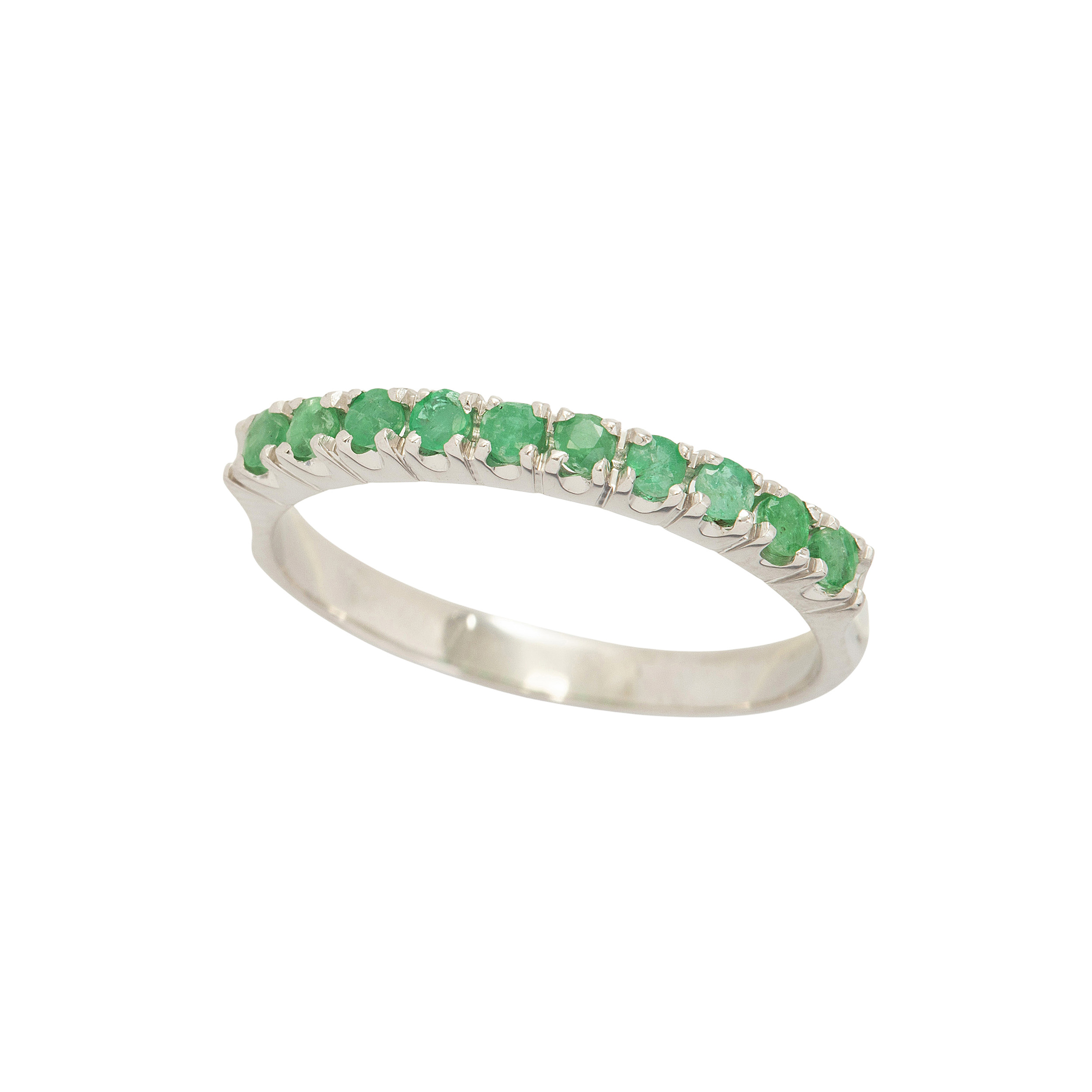 Meia-aliança de ouro branco com esmeraldas. Medida 17.