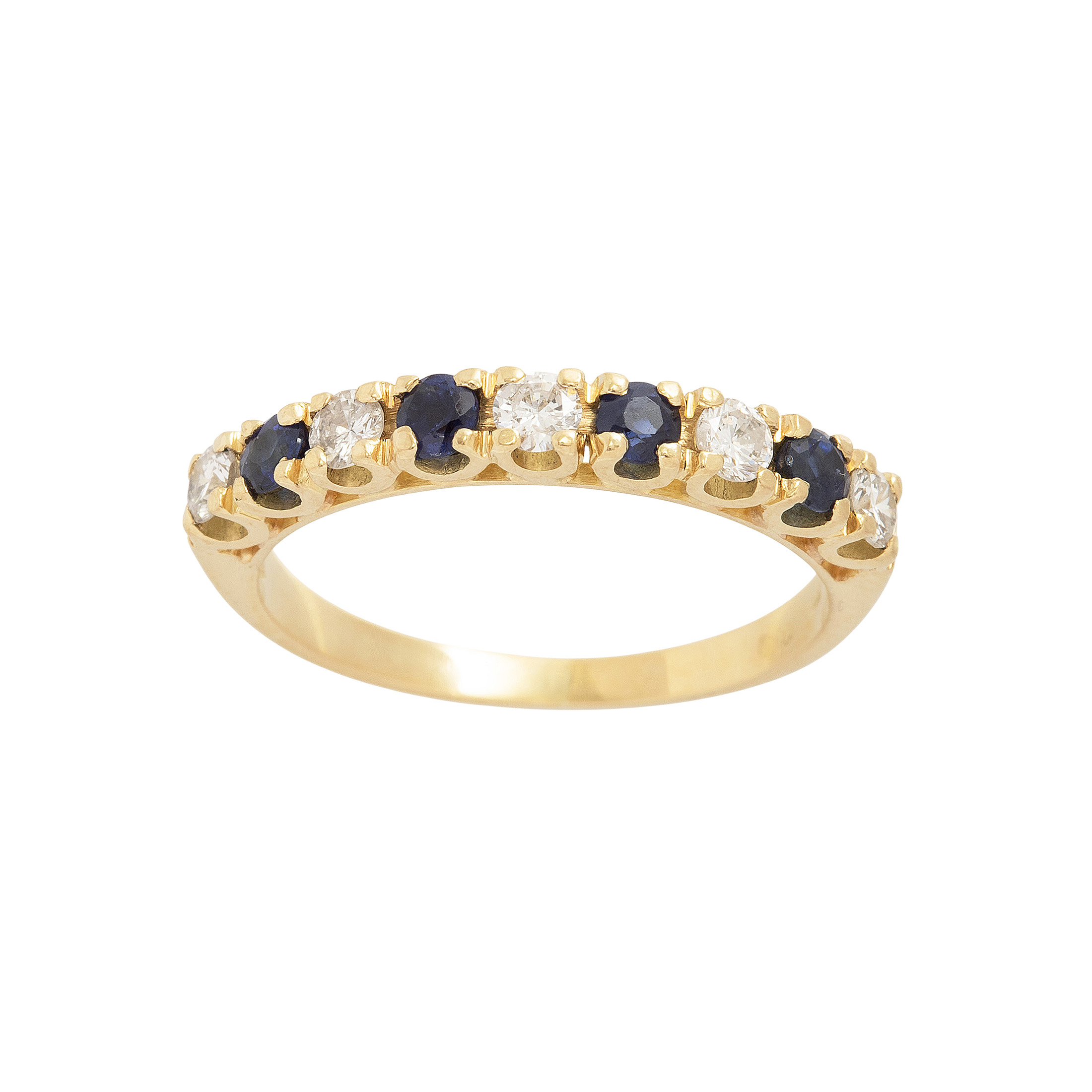 Meia-aliança de ouro amarelo com safiras e 0,30ct de brilhantes. Medida 17.