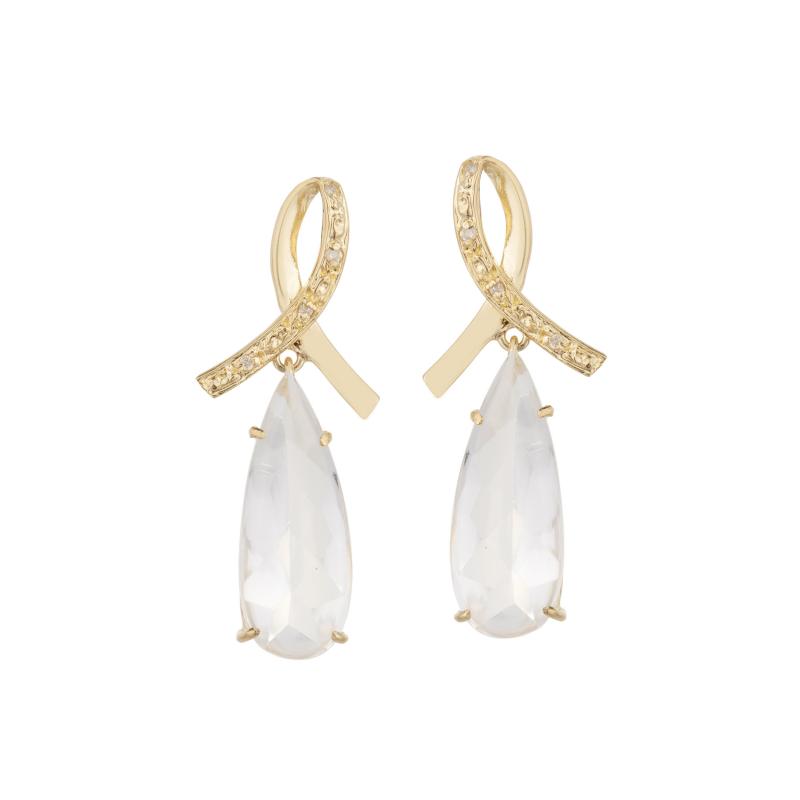 Brinco de ouro amarelo com quartzos e 0,04ct de brilhantes. Medida 3,7cm.