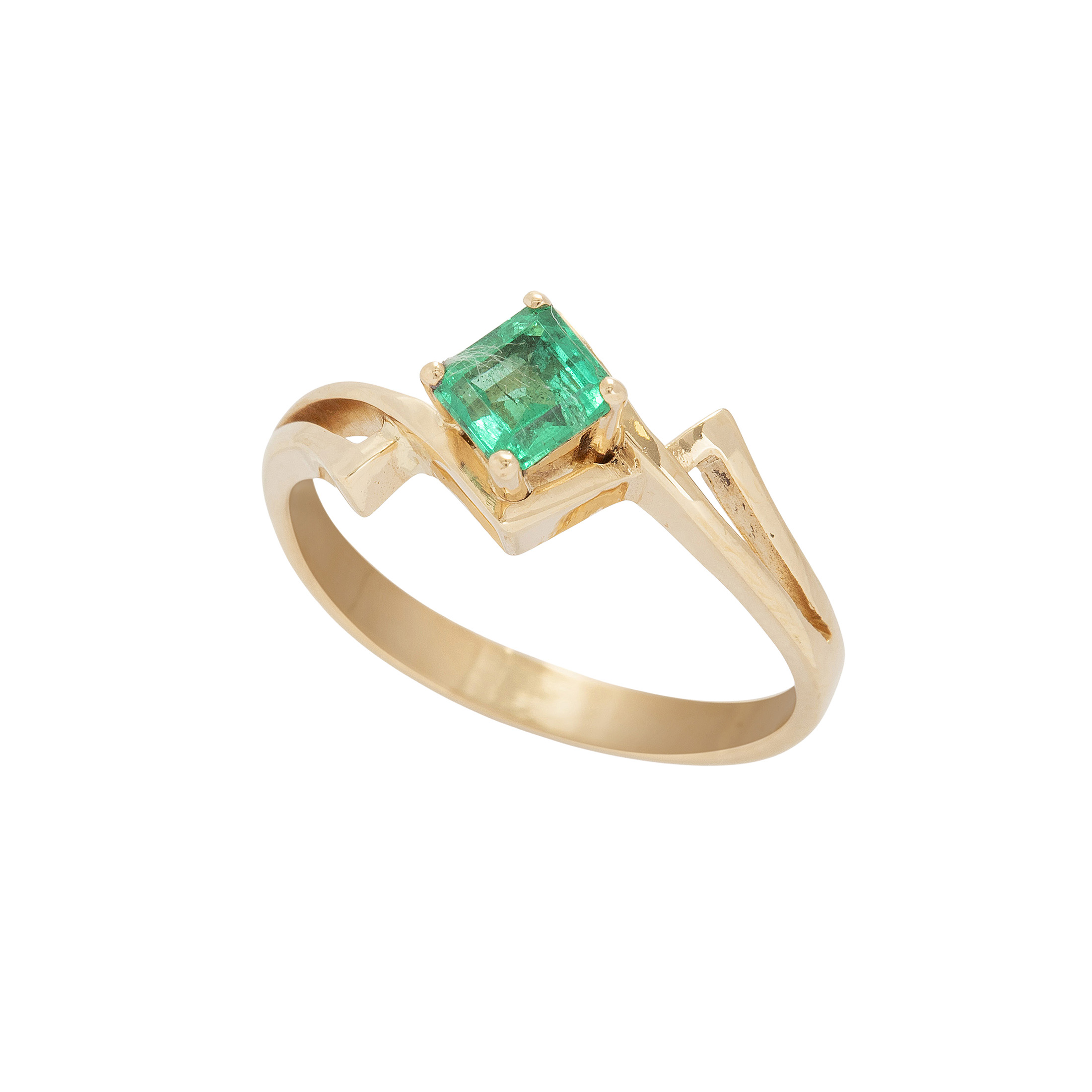 Anel de ouro amarelo com 0,40ct de esmeralda. Medida 15.
