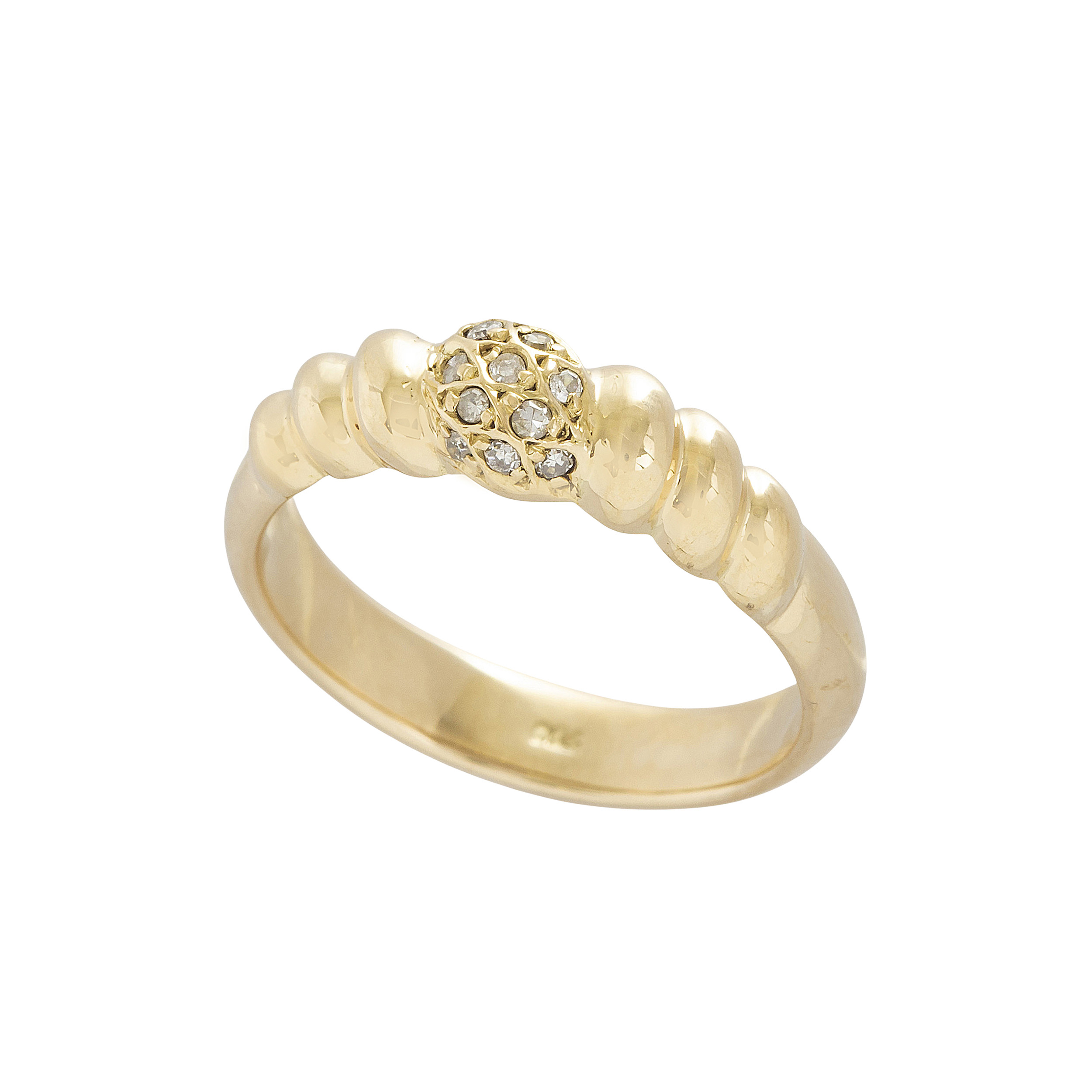 Anel de ouro amarelo com 0,10ct de brilhantes. Medida 13.