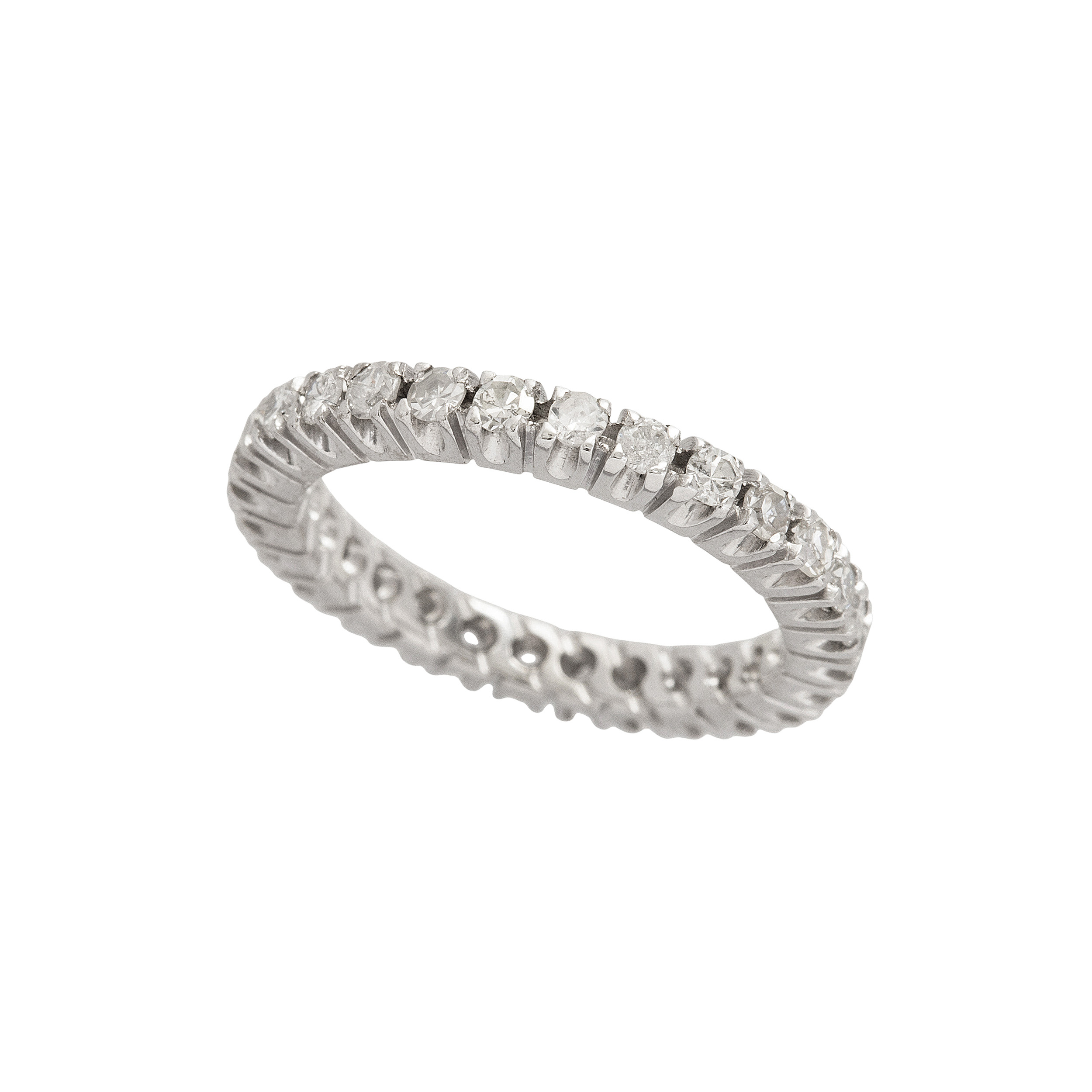 Aliança de ouro branco com 0,84ct de brilhantes. Medida 13.