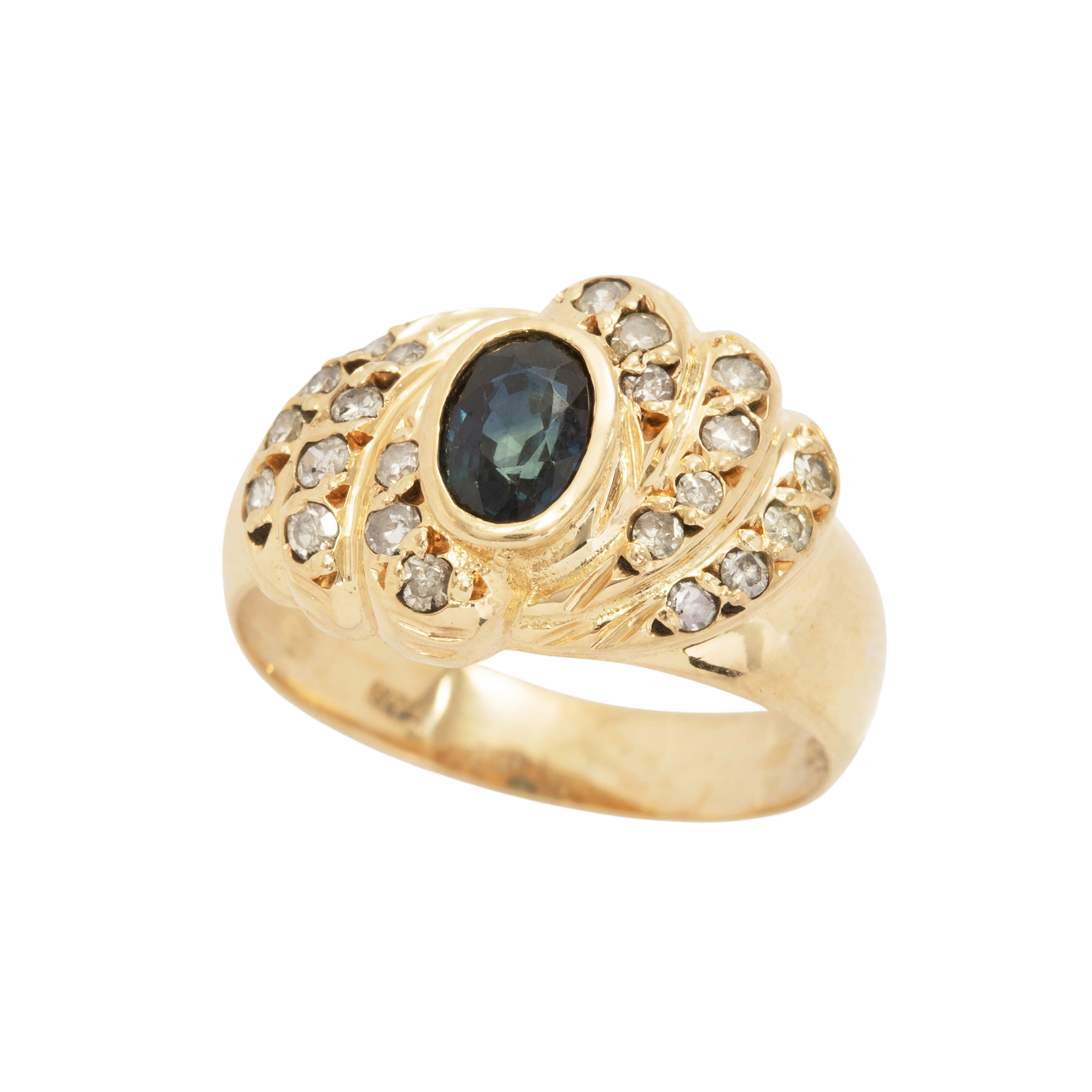 Anel de ouro amarelo com safira e 0,20ct de brilhantes. Medida 13.
