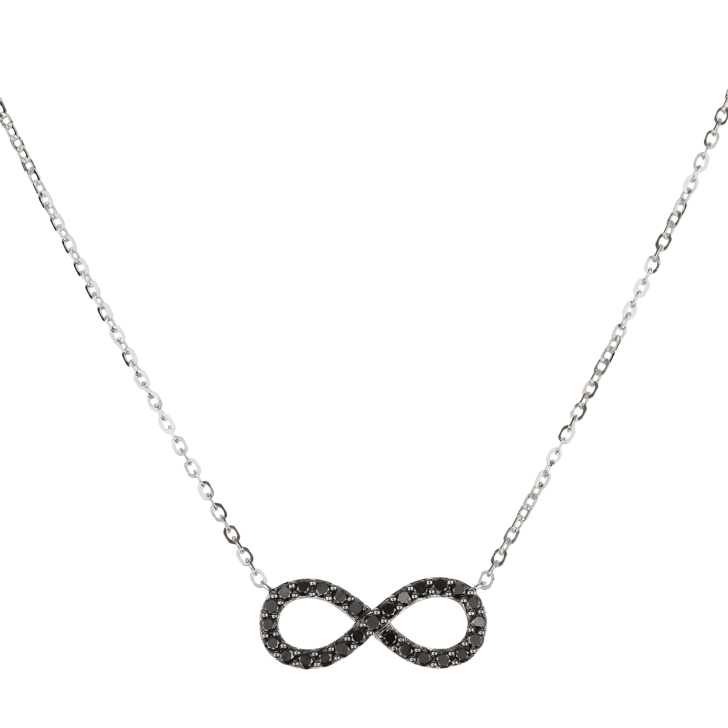 Corrente com pingente de ouro branco e 0,65ct de brilhantes negros. Medidas 0,6cm/45cm.