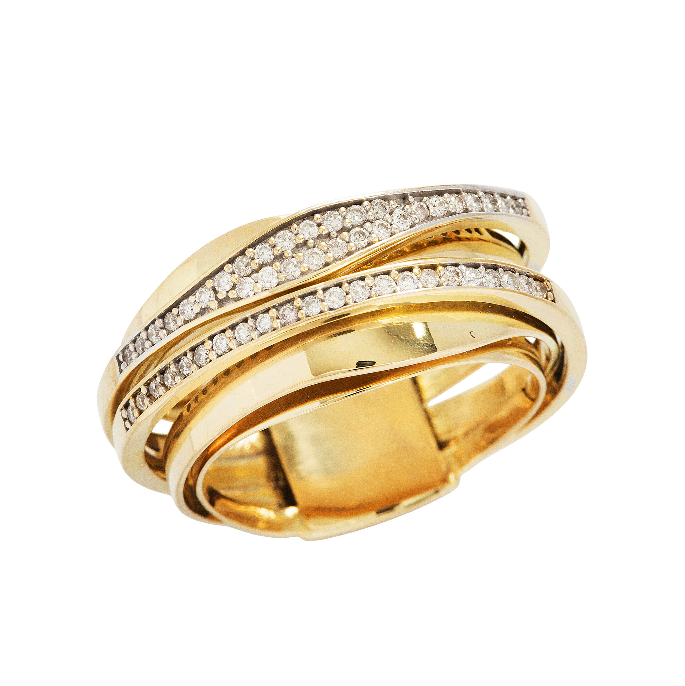 Anel de ouro amarelo com 0,35ct de brilhantes e 12,4g. Medida 20.