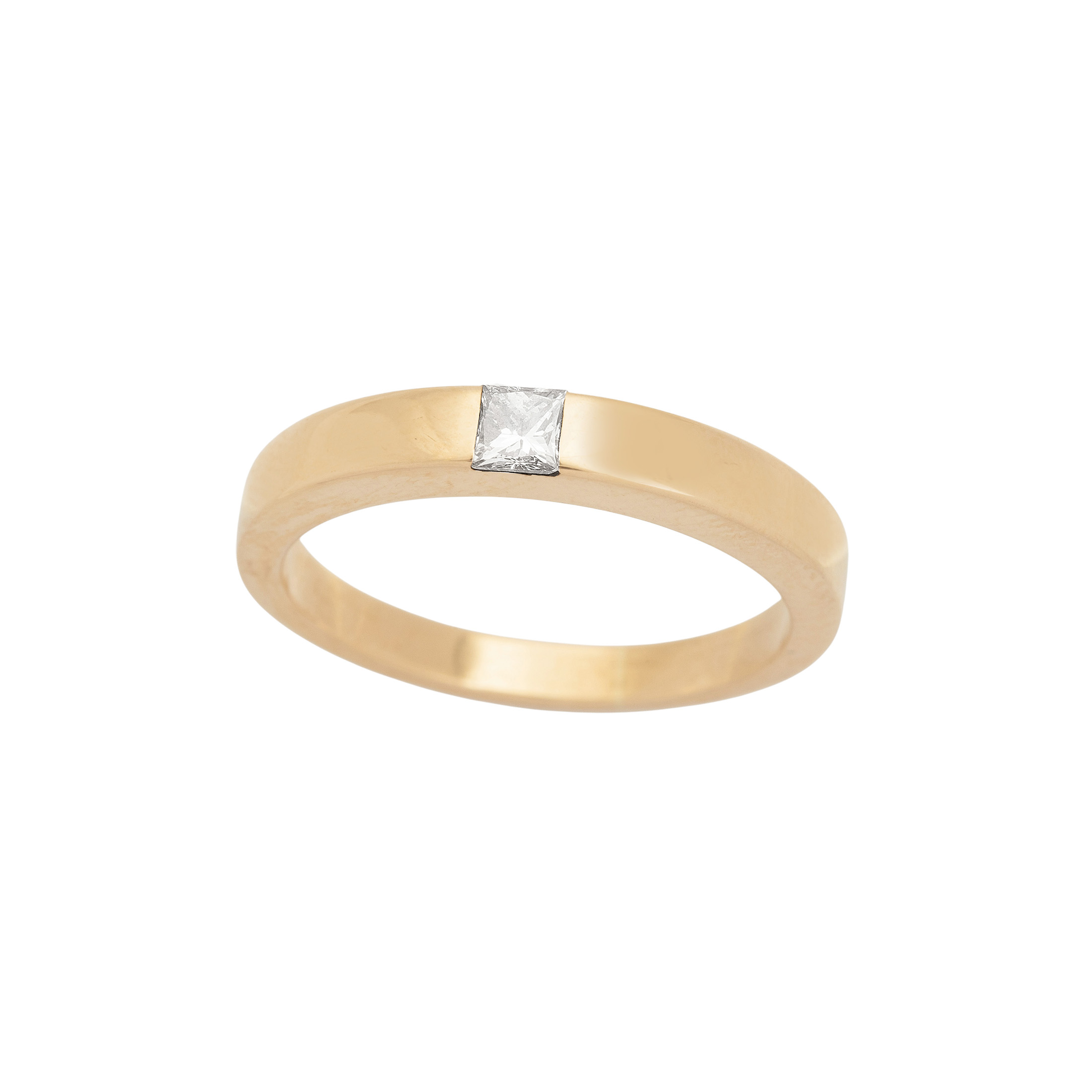 Anel de ouro amarelo com 0,10ct de diamante lapidação princess. Medida 17.