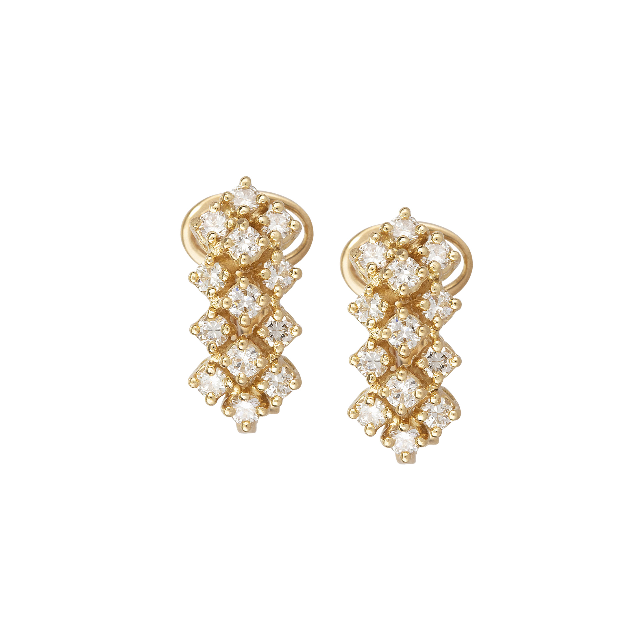 Brinco de ouro amarelo com 1,17ct de brilhantes e 6,3g. Medida 1,2cm.