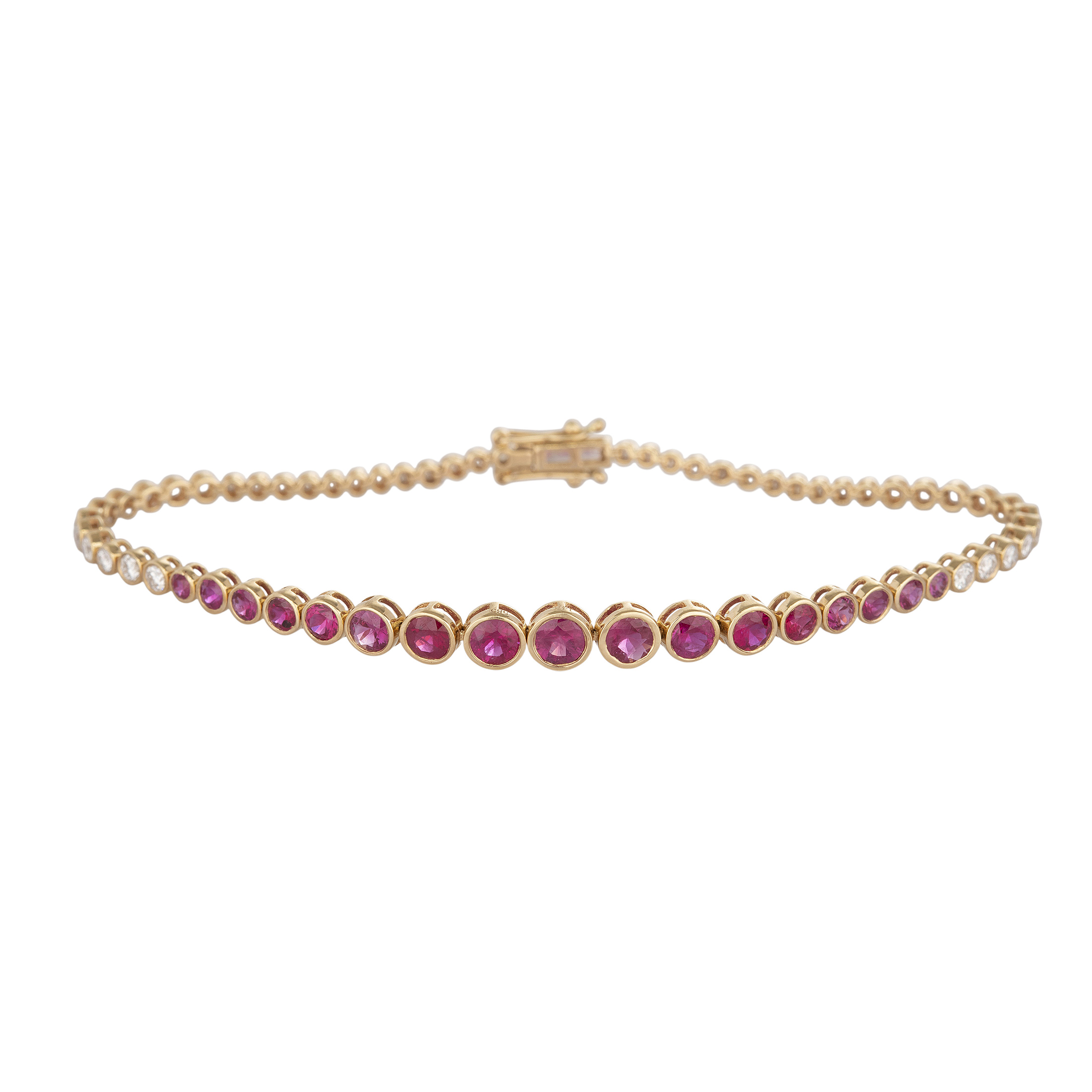 Pulseira de ouro amarelo 14k com rubis, 0,90ct de brilhantes e 6,0g. Medida 17,5cm.