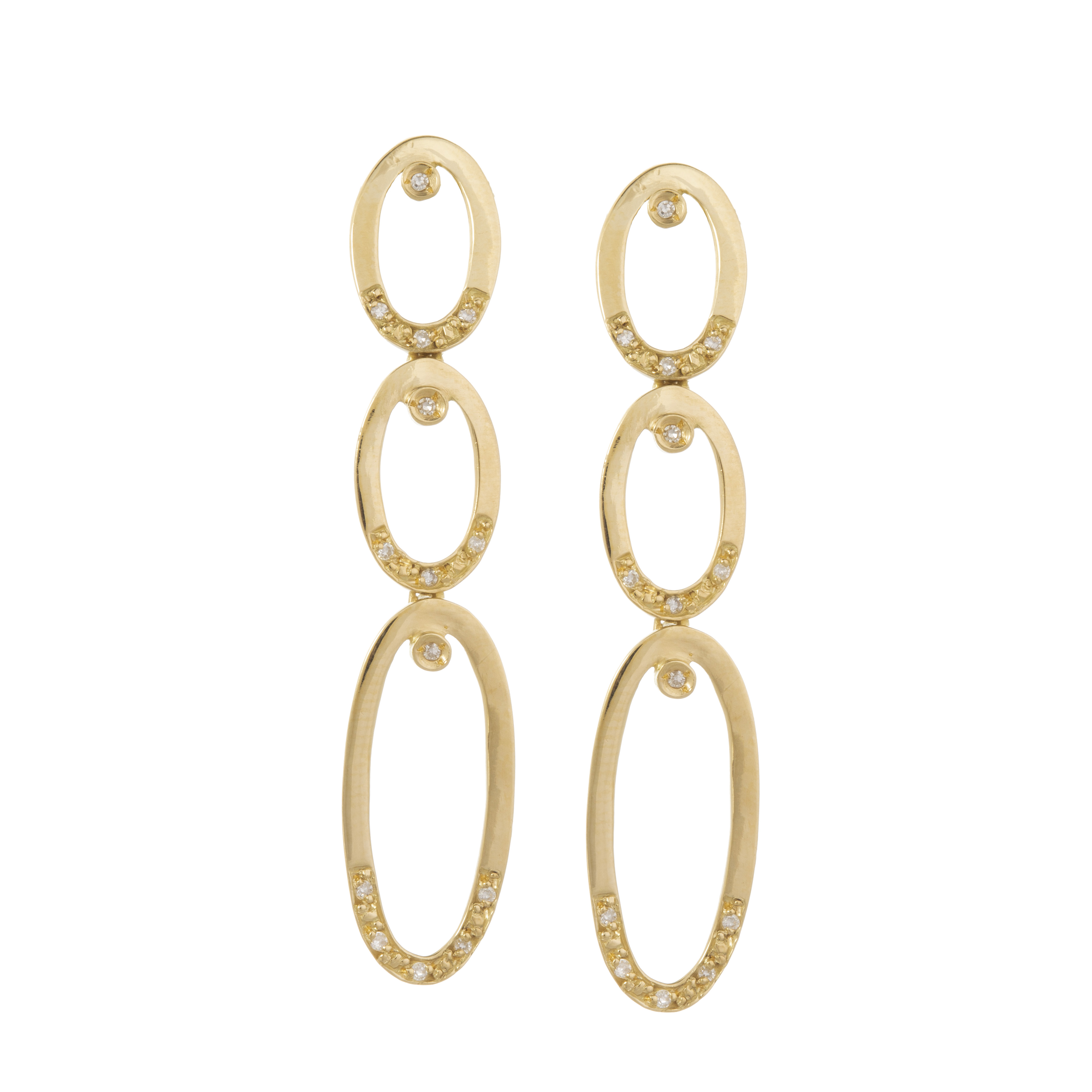 Brinco de ouro amarelo com 0,10ct de brilhantes. Medida 5cm.