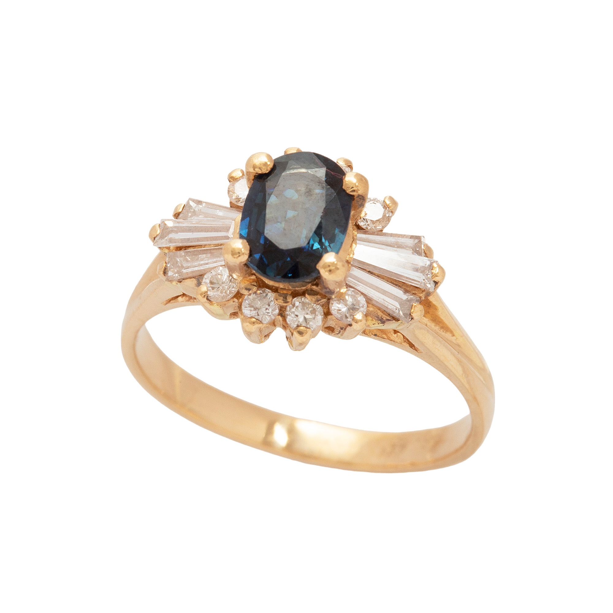 Anel de ouro amarelo com 0,85ct de safira e 0,80ct de diamantes. Medida 16.