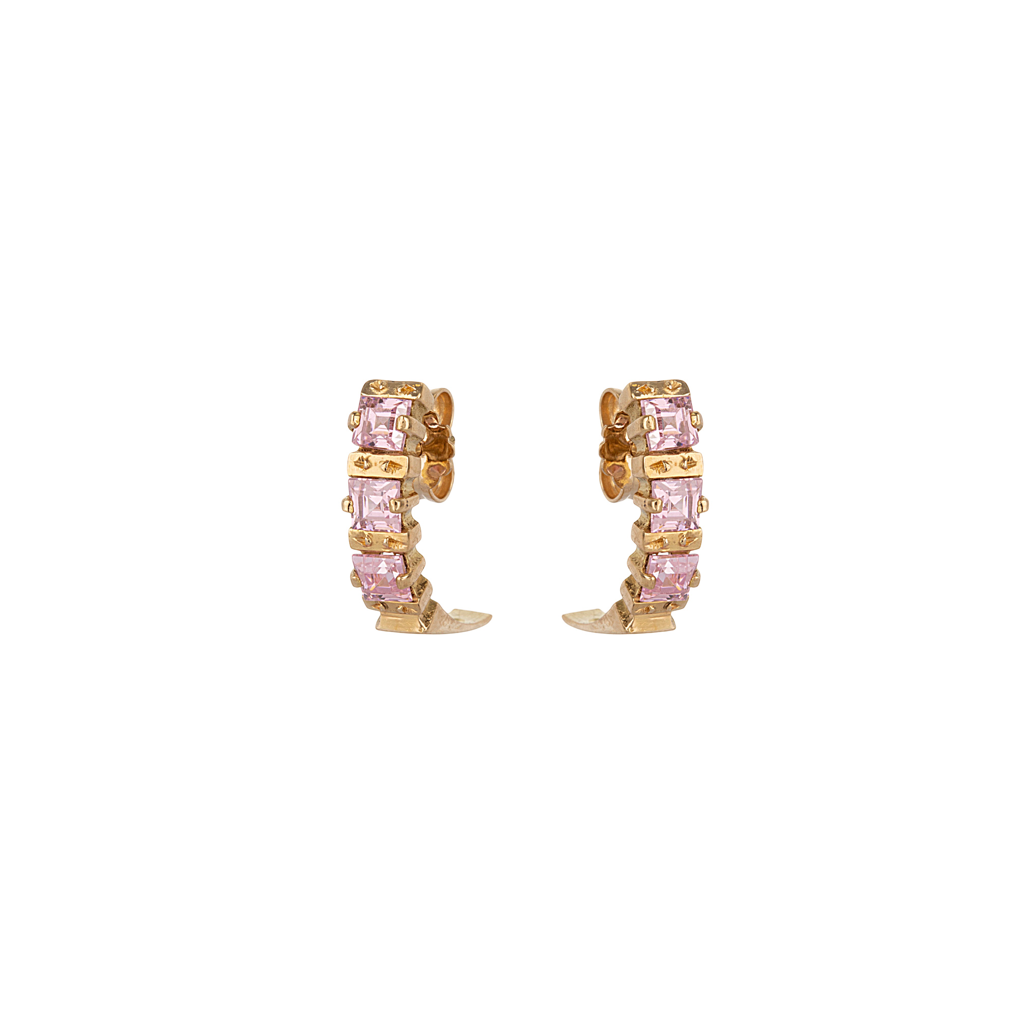 Brinco de ouro amarelo com morganitas. Medida 1,7cm.