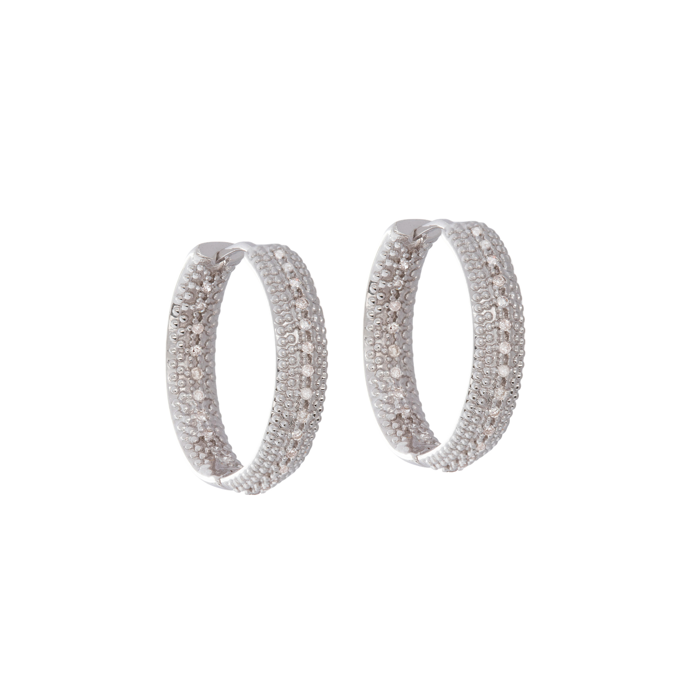 Brinco de ouro branco com 0,25ct de brilhantes e 6,3g. Medida 1,9cm.