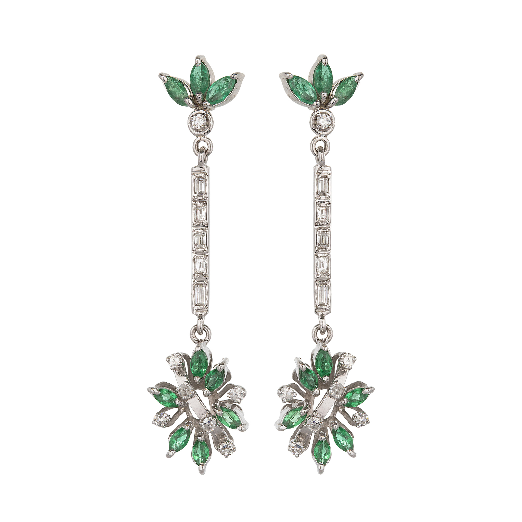 Brinco de ouro branco com esmeradas, 1,00ct de brilhantes I/SI e 9,0g. Medida 5,5cm.