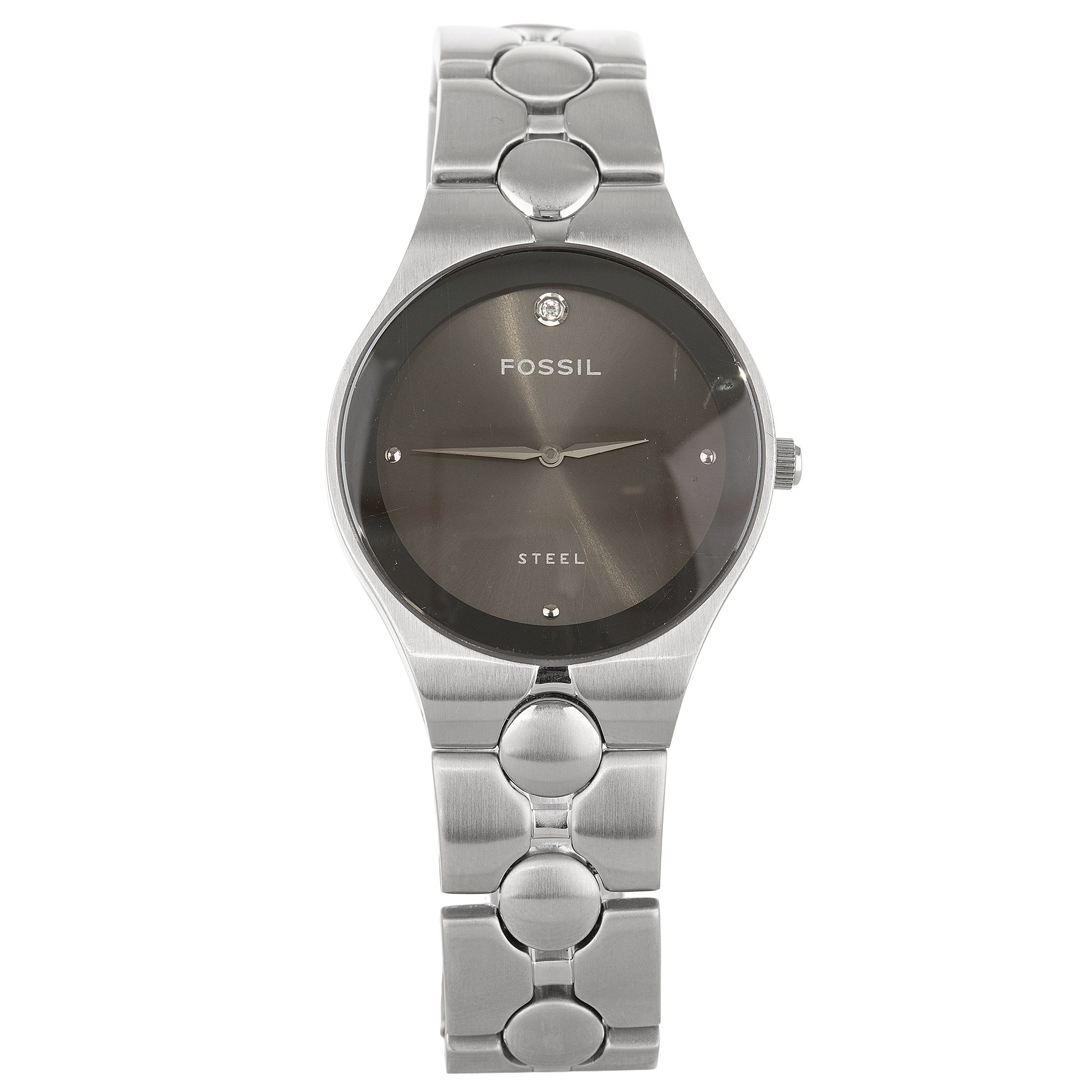 FOSSIL. Relógio Arkitekt de aço com 0,01ct de brilhante, movimento a quartzo, vidro de cristal, anos 2000. Caixa 34mm. Pulseira 17cm.
