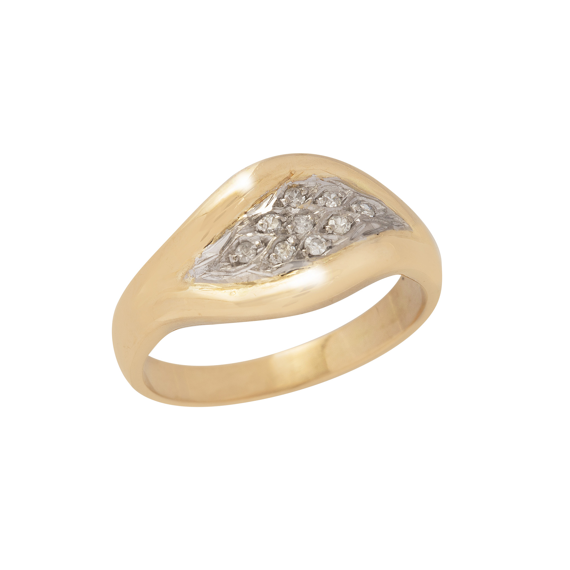 Anel de ouro amarelo com 0,07ct de brilhantes. Medida 16.