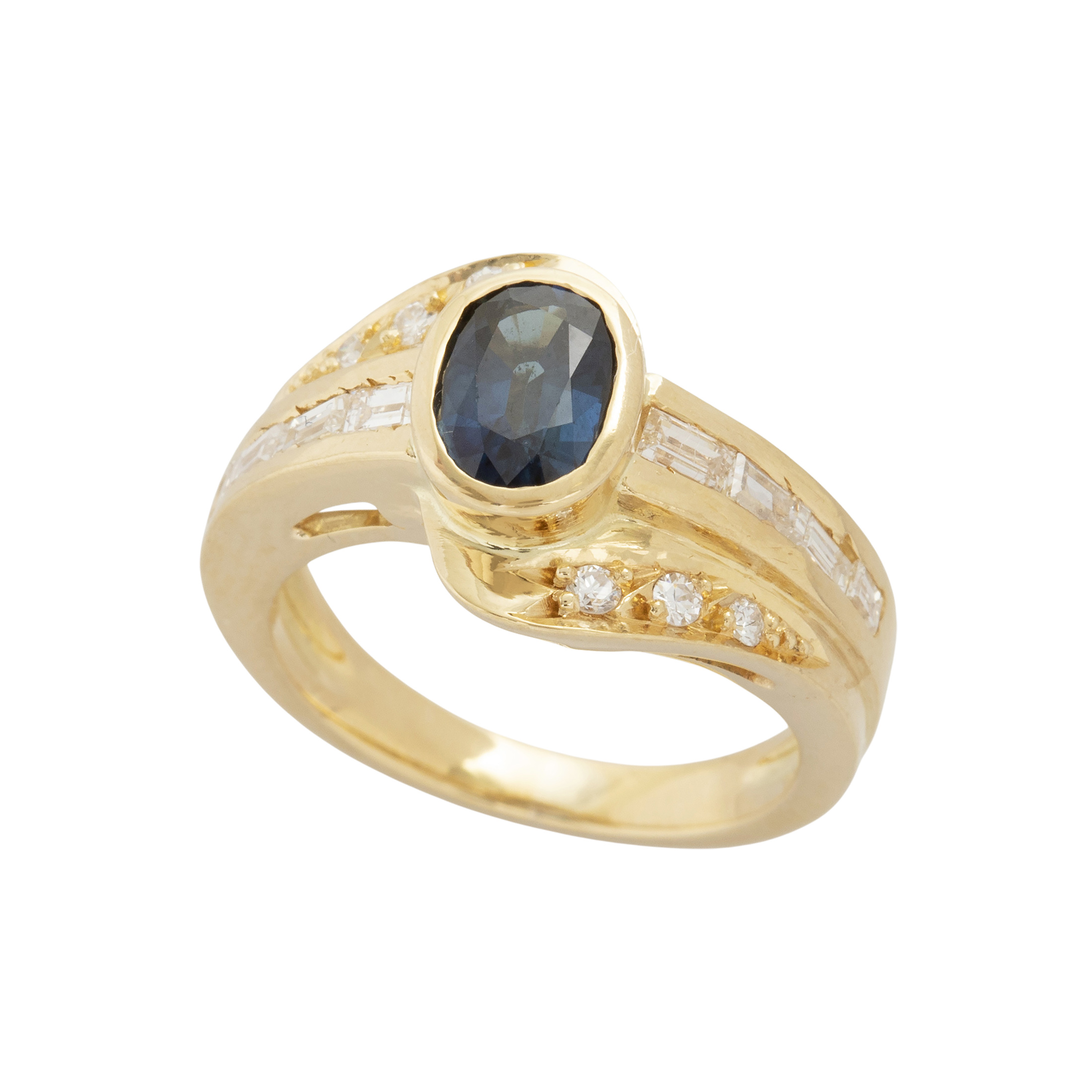 Anel de ouro amarelo com 0,80ct de safira, 0,48ct de diamantes e 6,0g. Medida 10.