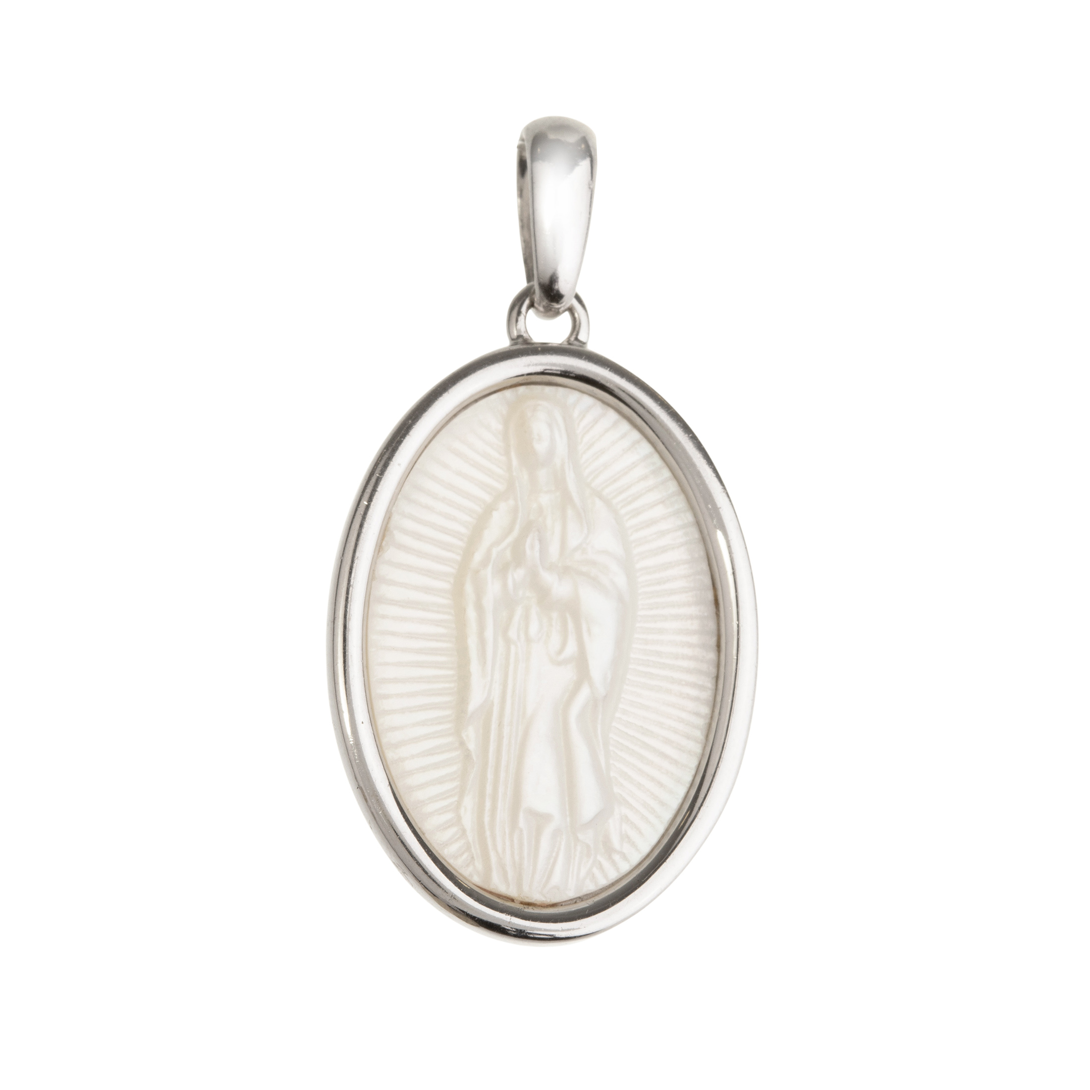 Pingente de ouro branco com madrepérola. Medida 4cm.