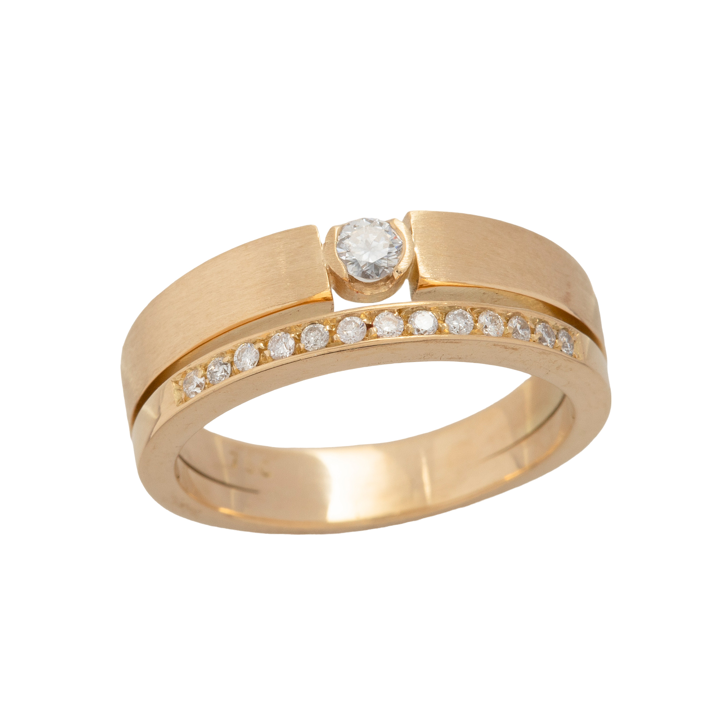 Anel de ouro amarelo com 0,30ct de brilhantes. Medida 18.