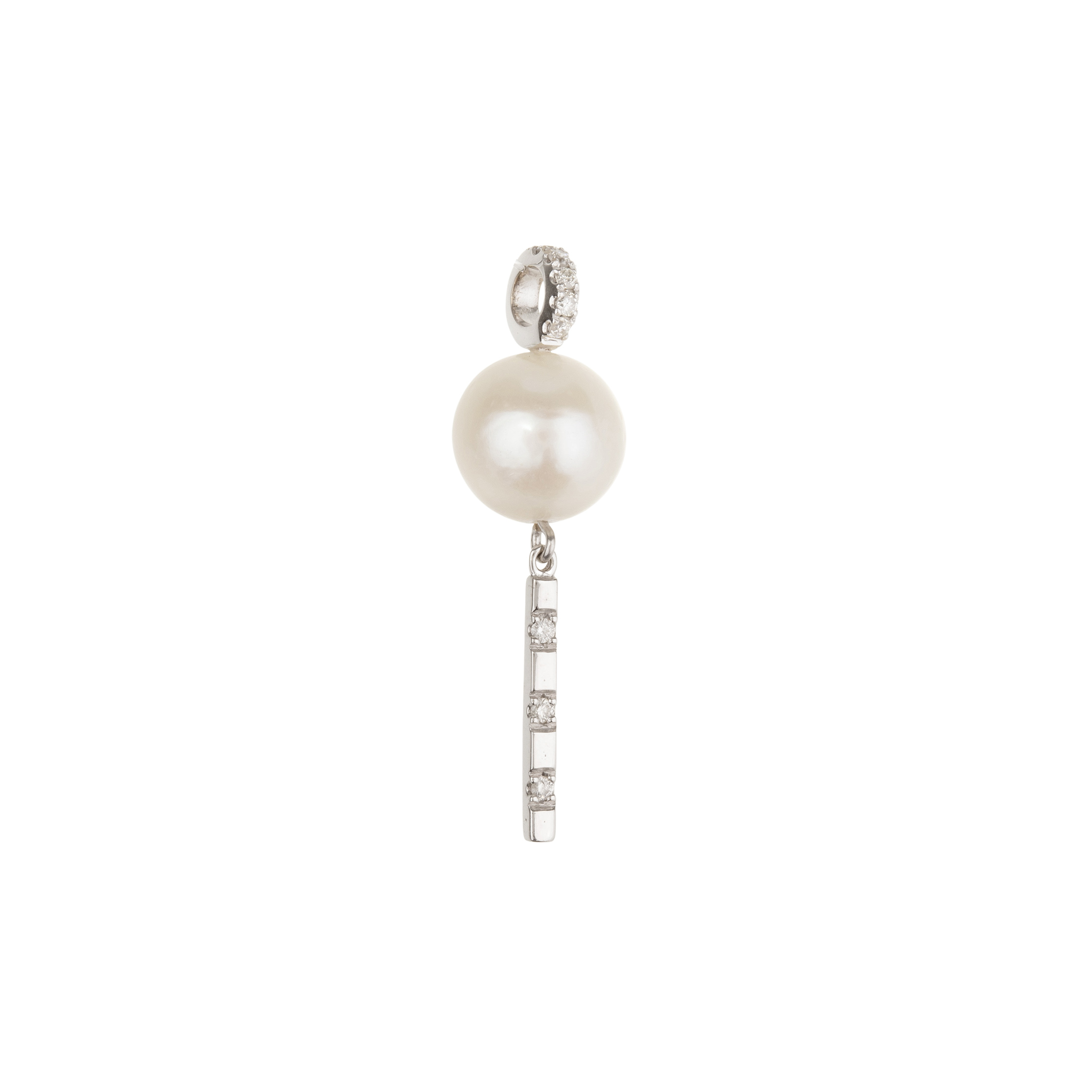 Pingente de ouro branco com pérola (10mm) e 0,10ct de brilhantes. Medida 3,4cm.