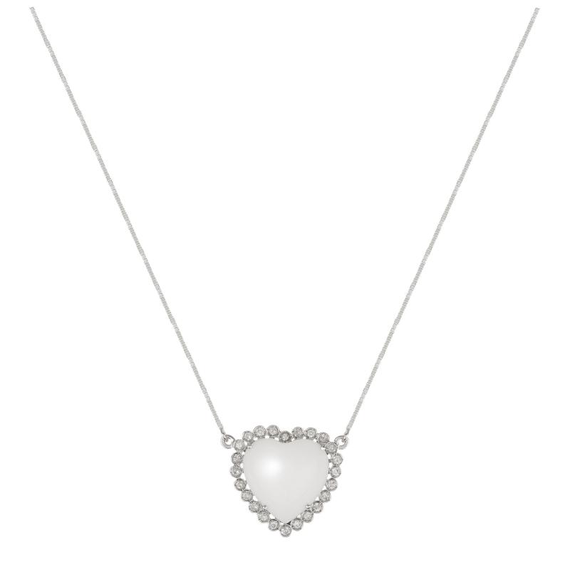 Corrente com pingente de ouro branco, ágata, 0,45ct de brilhantes e 8,5g. Medidas 2cm/42cm.