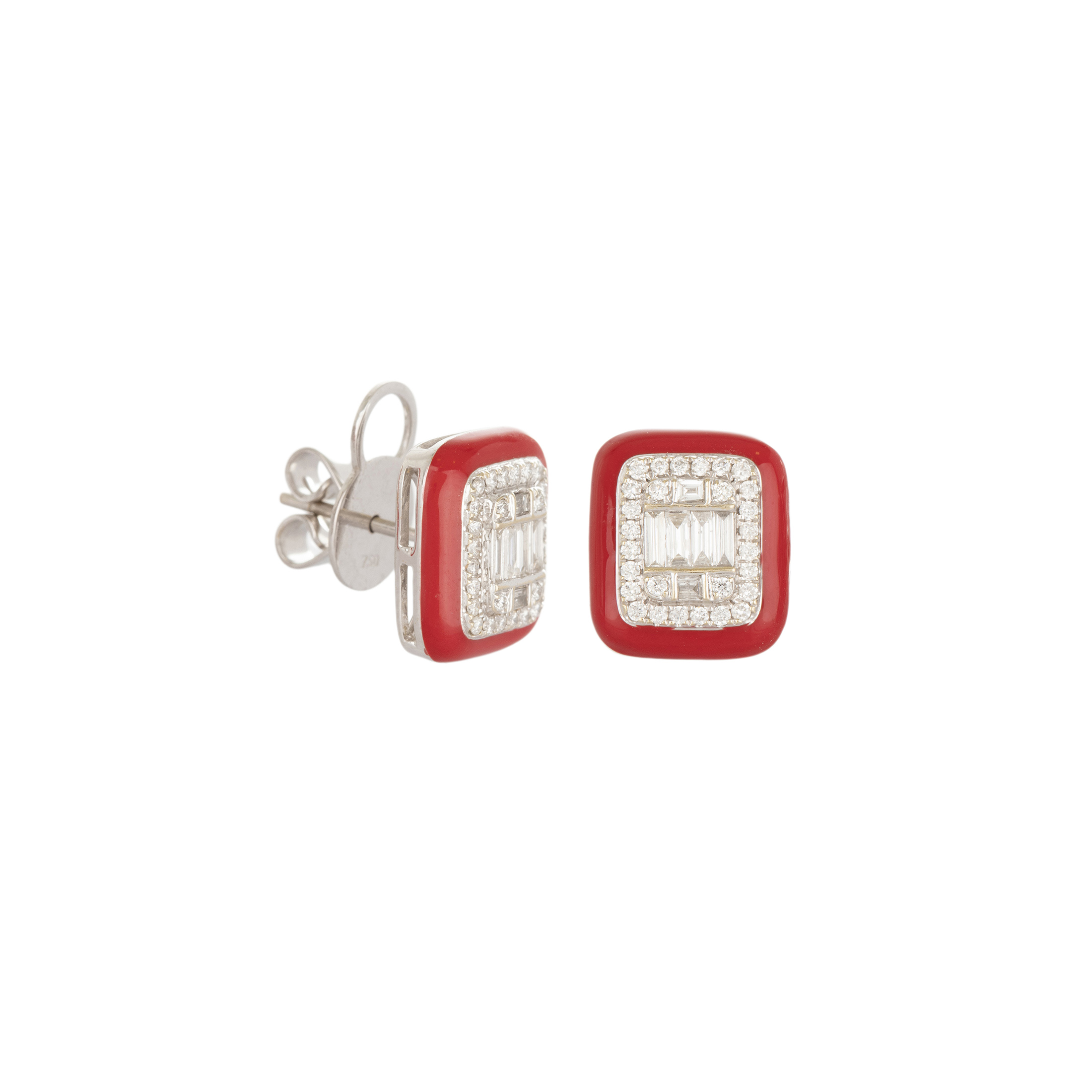 Brinco de ouro branco com esmalte, 0,85ct de diamantes e 6,9g. Medida 1,3cm.