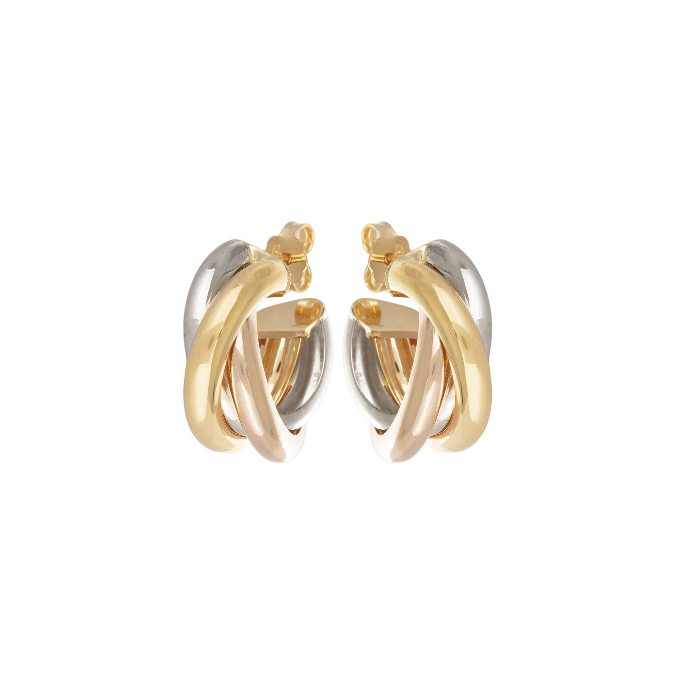 Brinco de ouro amarelo, branco, rosé e 6,1g. Medida 2cm.