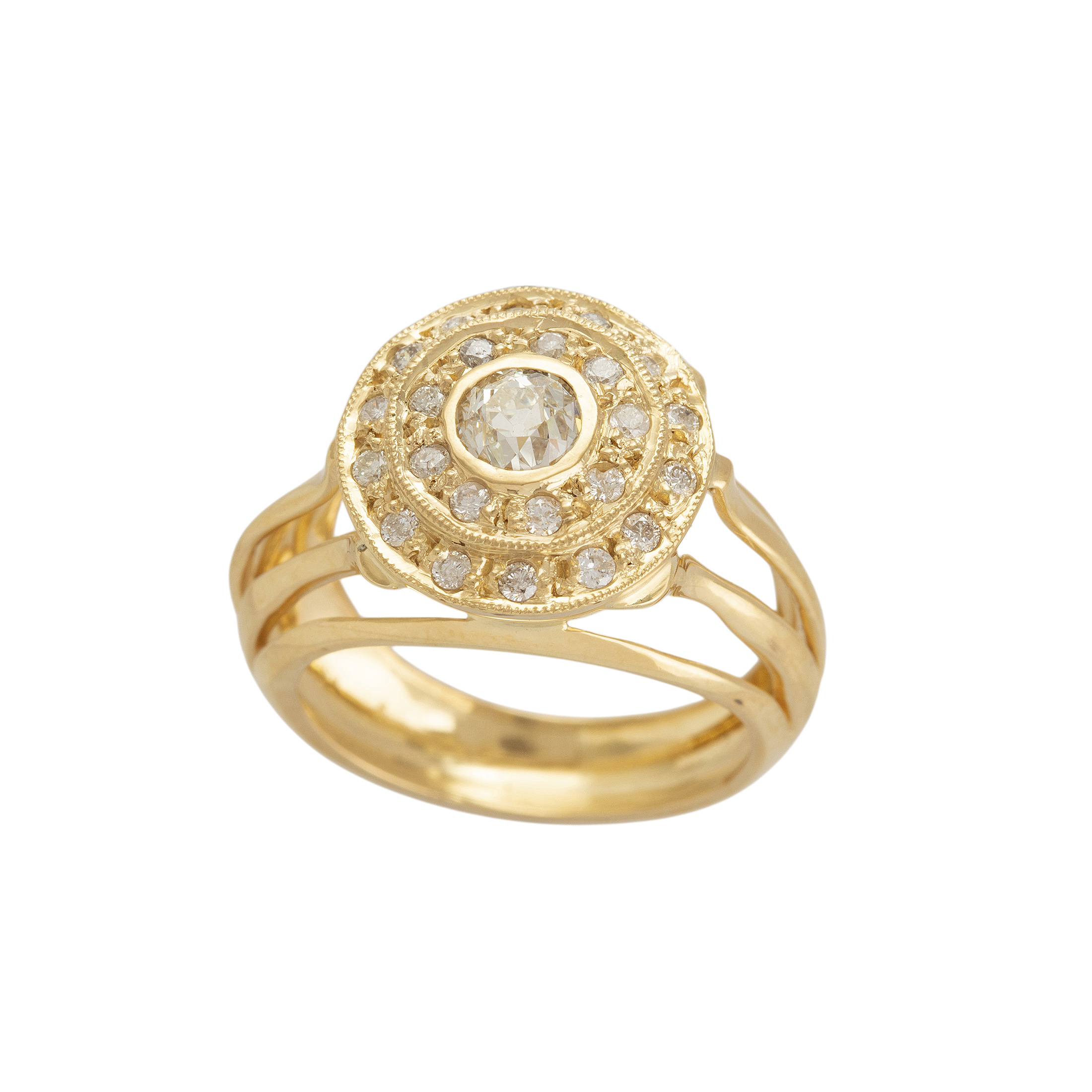 Anel de ouro amarelo com 0,90ct de brilhantes J/SI e 8,2g. Medida 16.