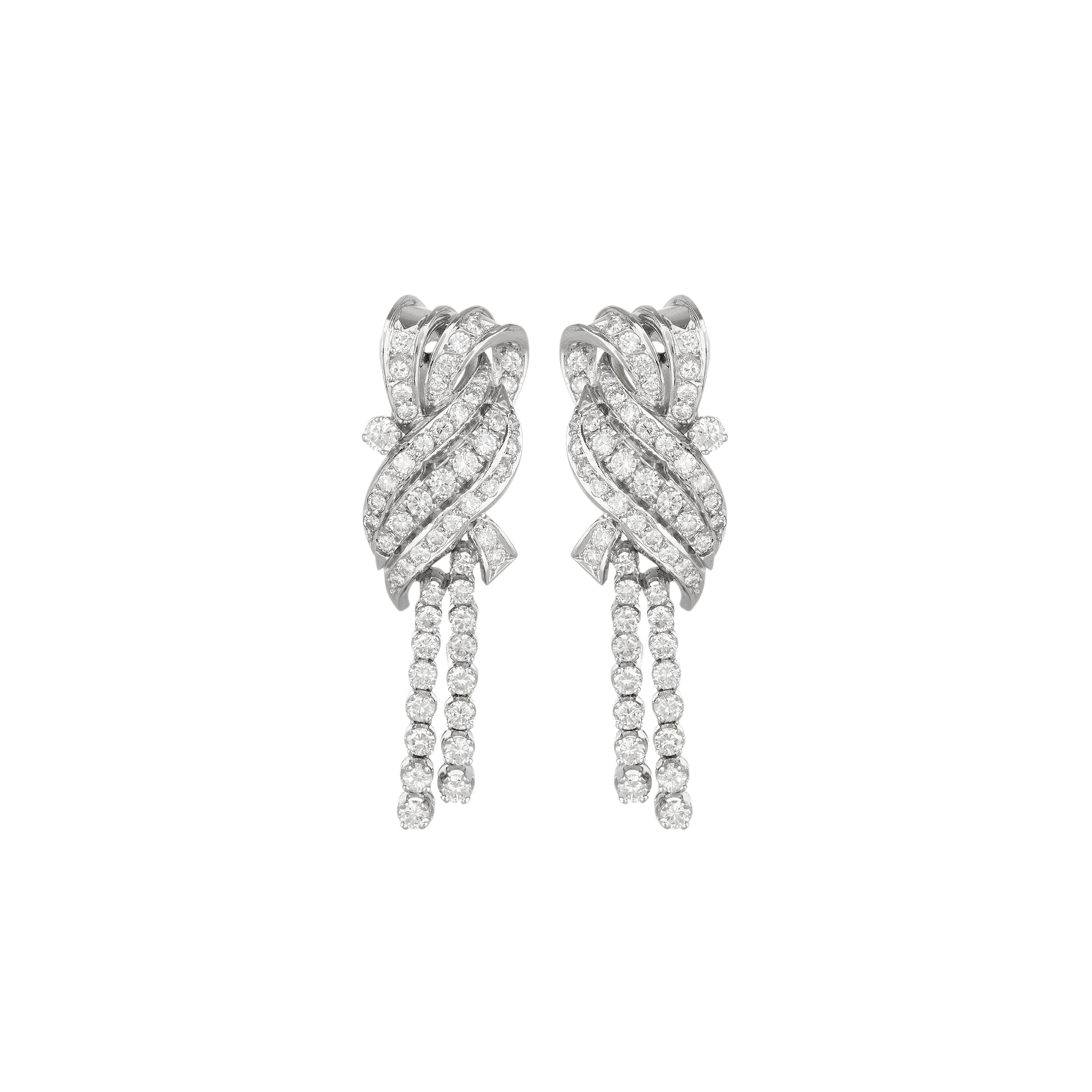 Brinco de platina com 4,20ct de brilhantes e 20,2g. Medida 4,5cm.