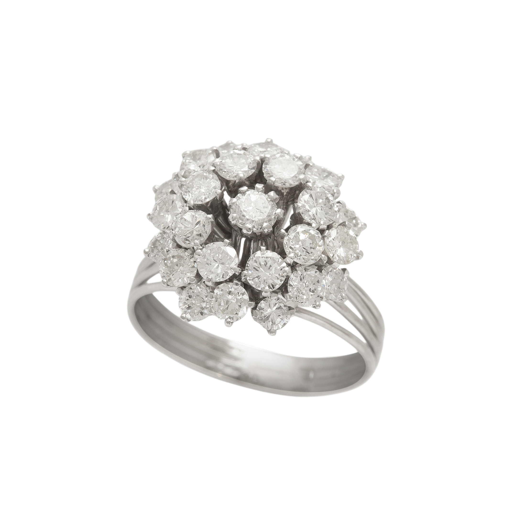 Anel chuveiro de platina com 2,25ct de brilhantes e 9,8g. Medida 17.