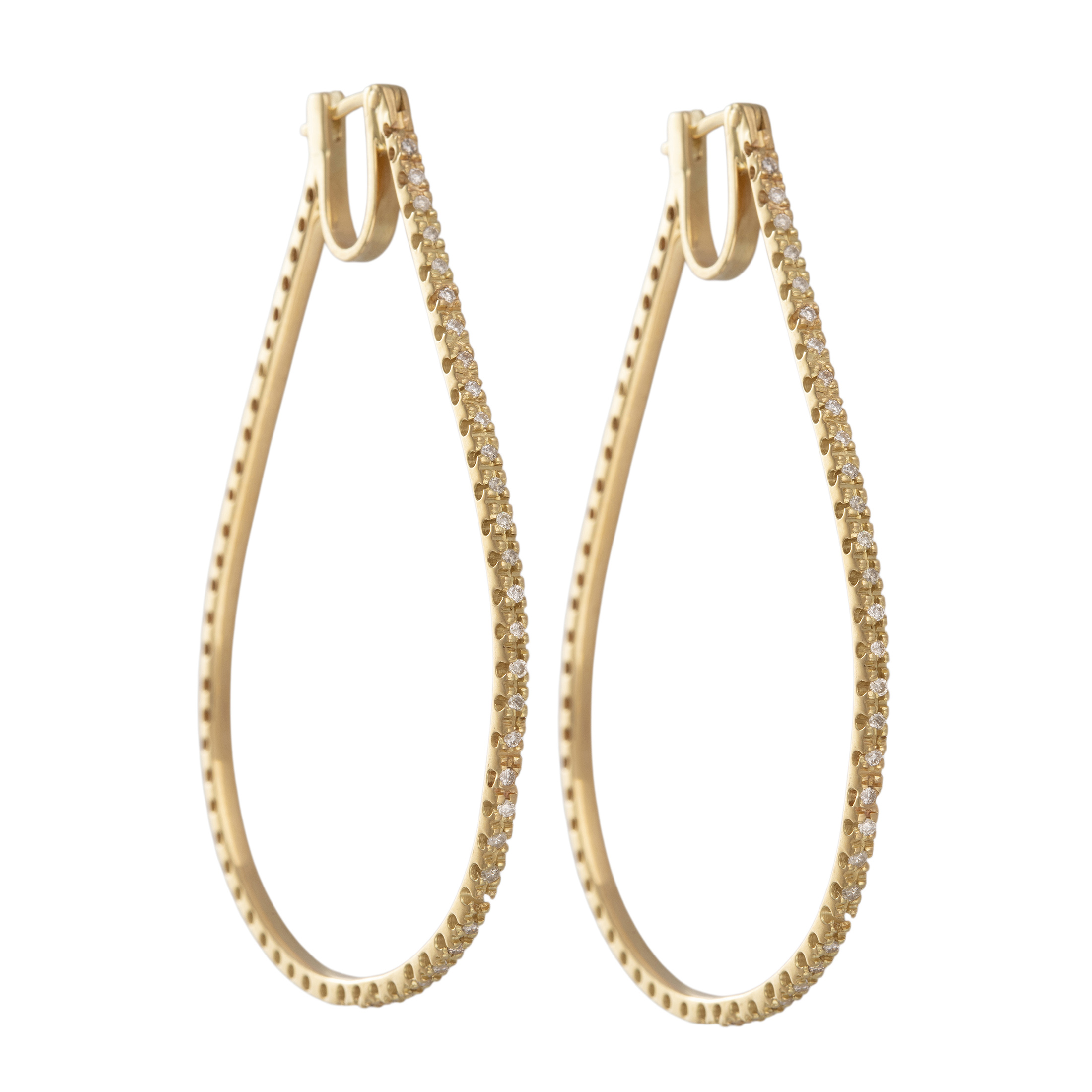 Brinco de ouro amarelo com 0,40ct de brilhantes e 12,0g. Medida 6cm.
