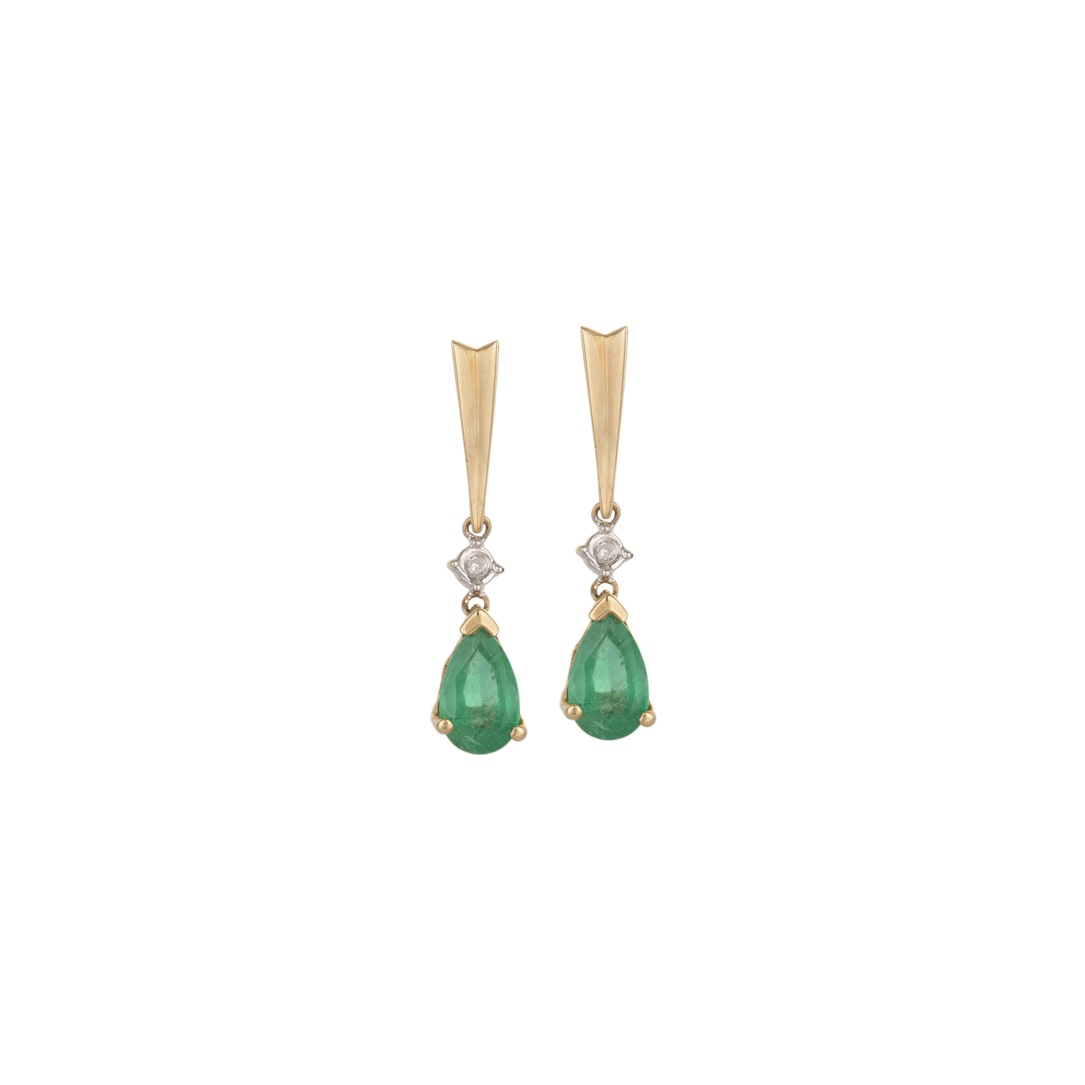 Brinco de ouro amarelo 14k com 2,00ct de esmeraldas e 0,02ct de brilhantes. Medida 2,4cm.