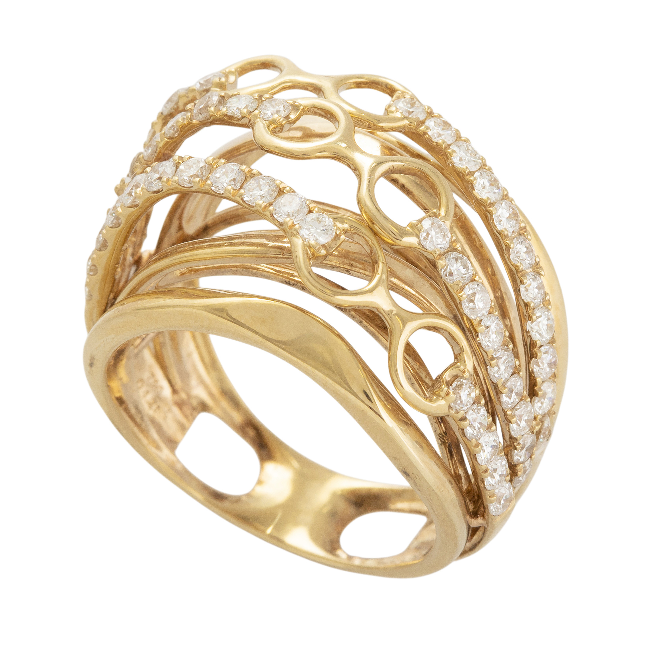 Anel de ouro amarelo com 1,40ct de brilhantes e 8,9g. Medida 17.
