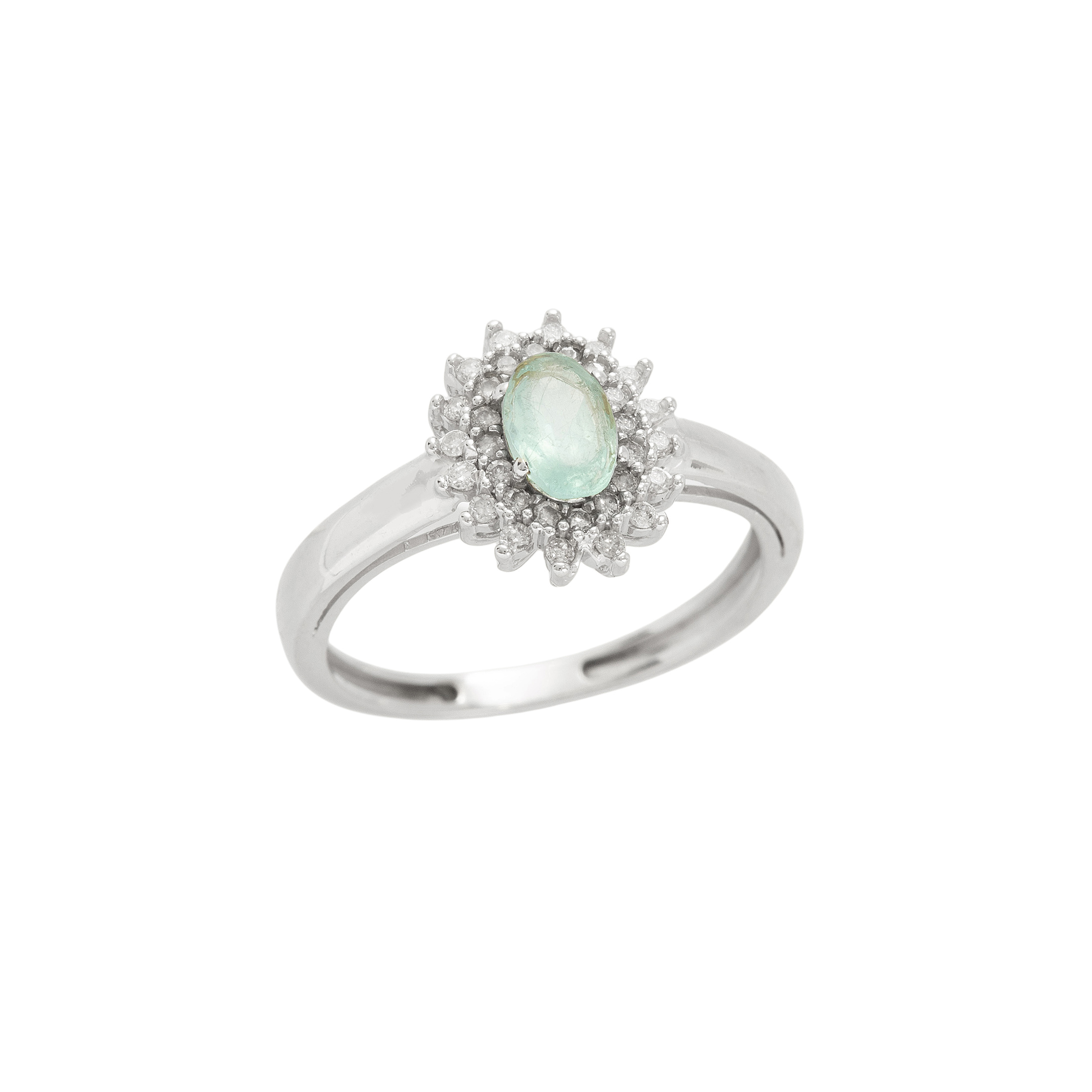 Anel de ouro branco com 0,40ct de turmalina paraíba e 0,15ct de brilhantes. Medida 14.