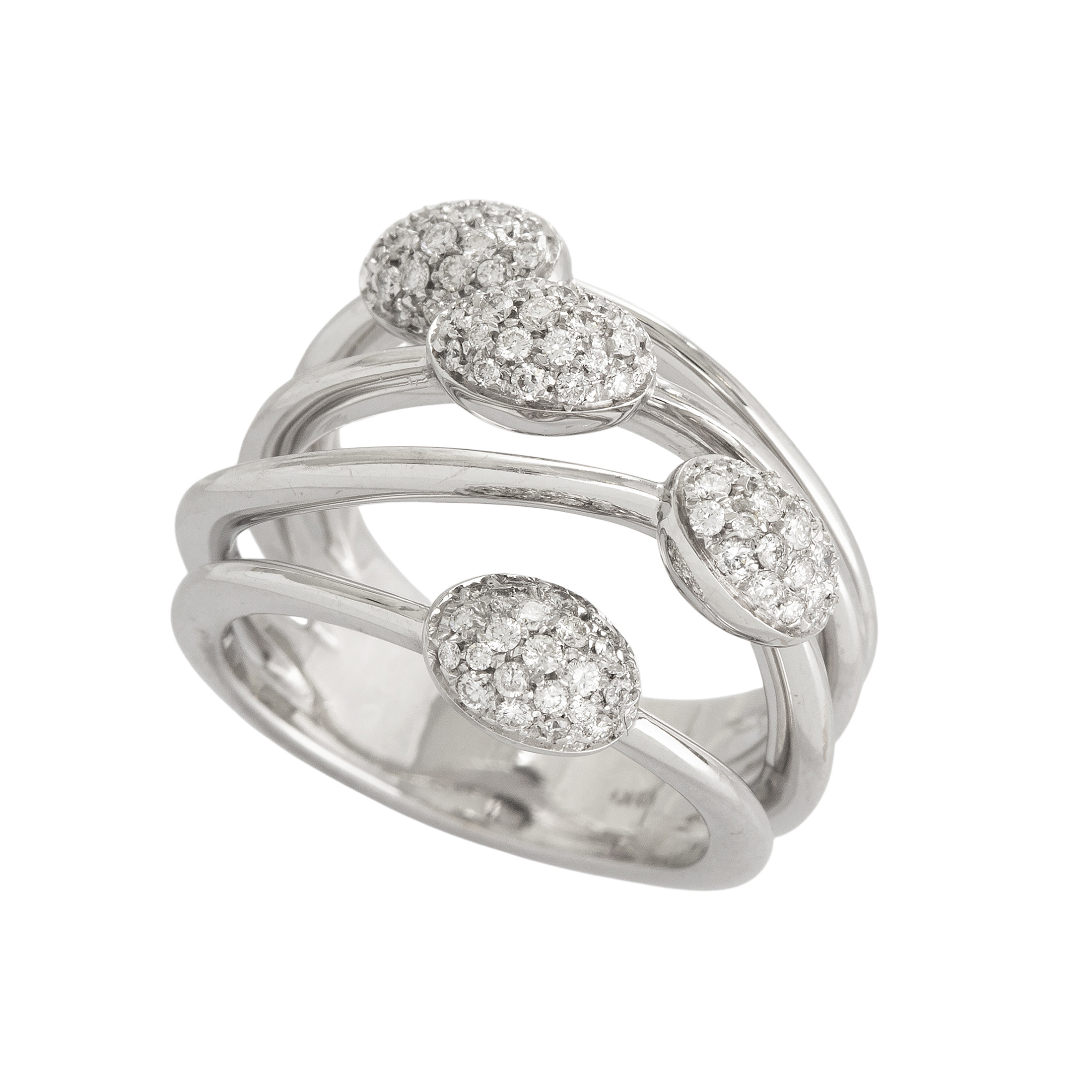 Anel de ouro branco com 0,85ct de brilhantes e 10,9g. Medida 15.