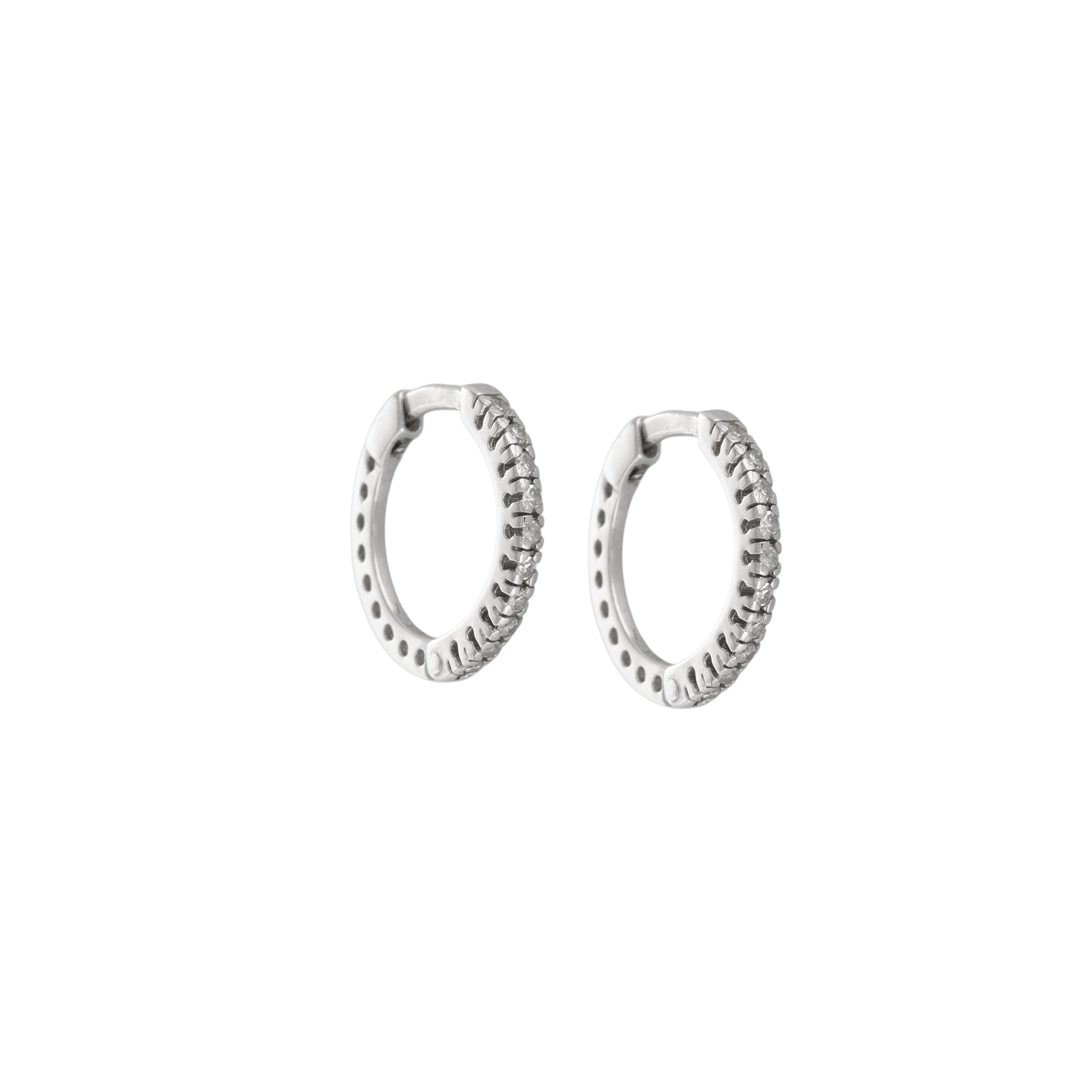 Brinco de ouro branco com 0,08ct de brilhantes. Medida 1,3cm.