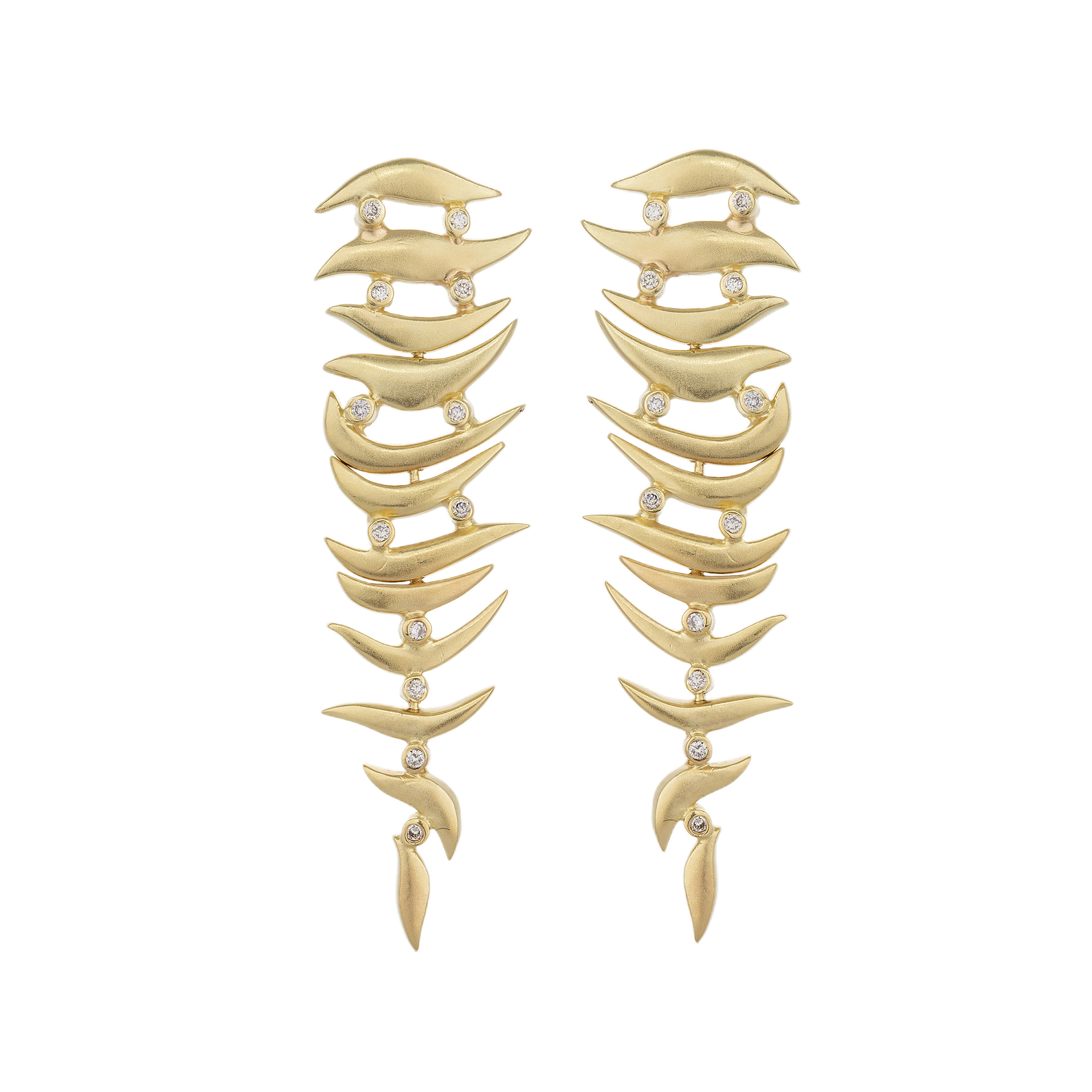 Brinco de ouro amarelo com 0,16ct de brilhantes e 13,6g. Medida 5,1cm.