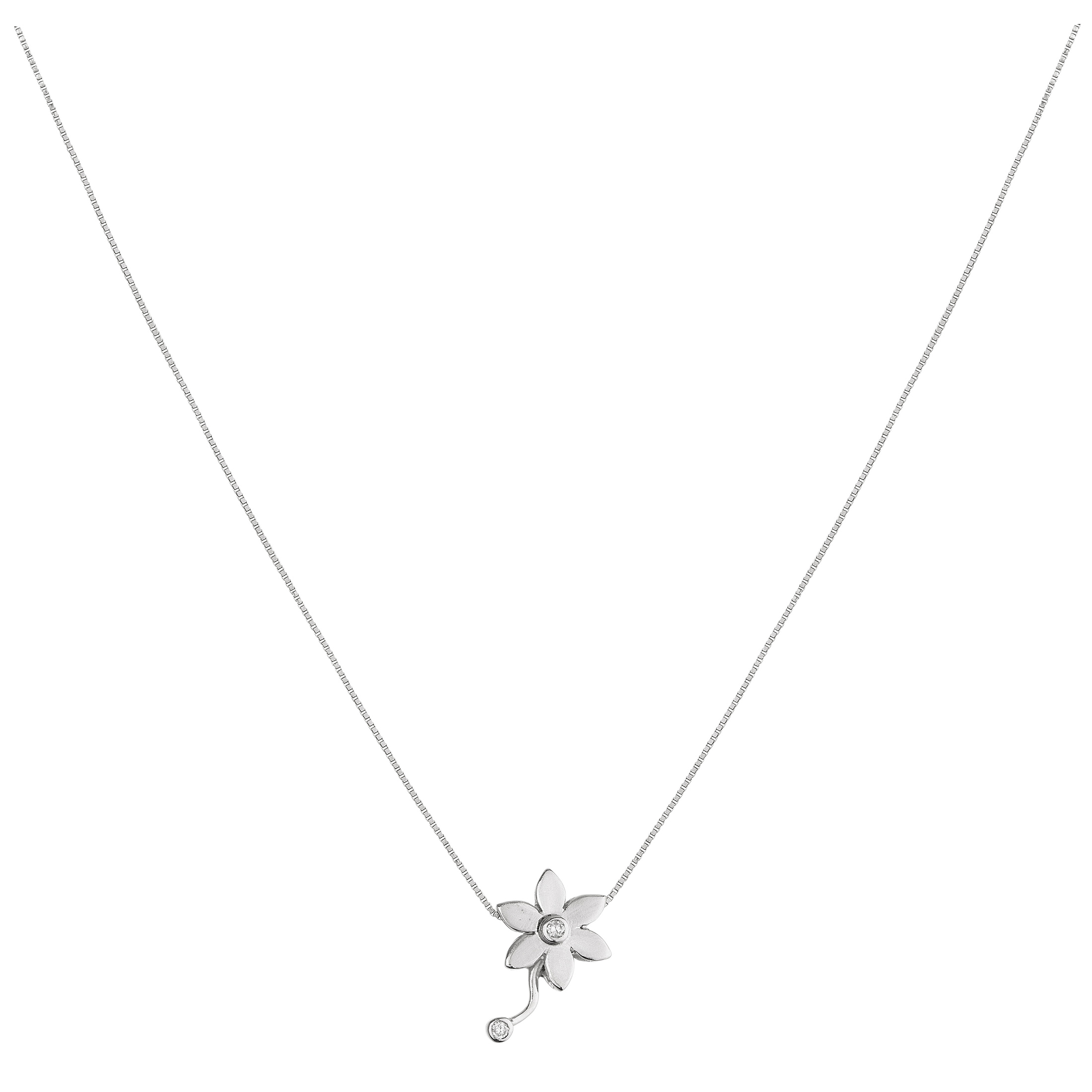 Corrente com pingente de ouro branco e 0,07ct de brilhante. Medidas 1,8cm/41cm.