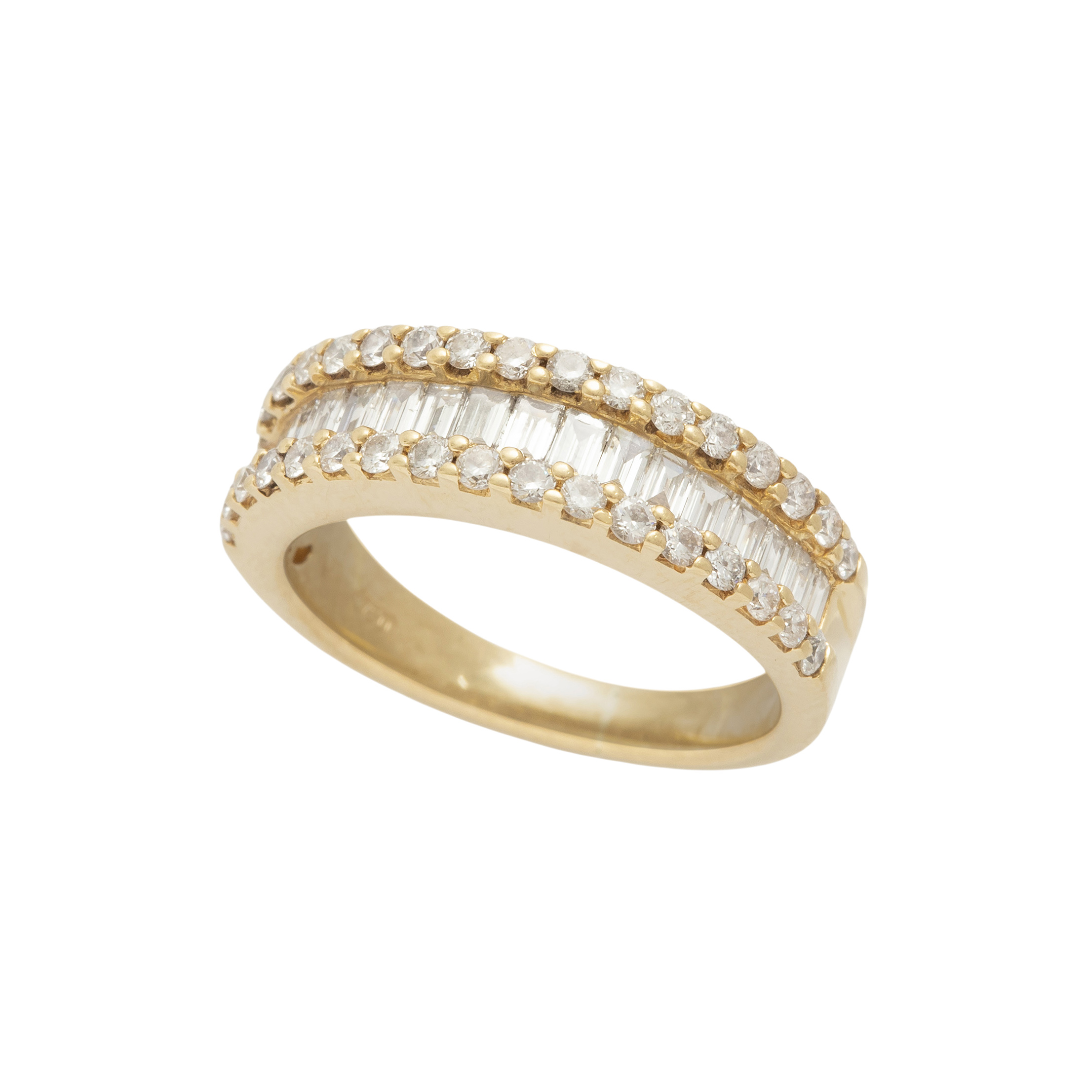 Anel de ouro amarelo com 0,75ct de diamantes e 6,1g. Medida 16.