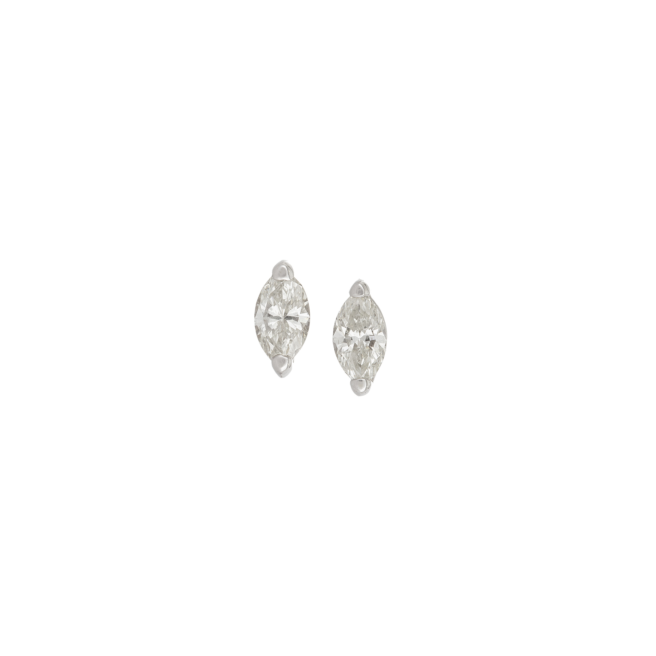 Brinco solitário de ouro branco e 0,77ct de diamantes lapidação navete L/VS-SI. Medida 0,8cm.