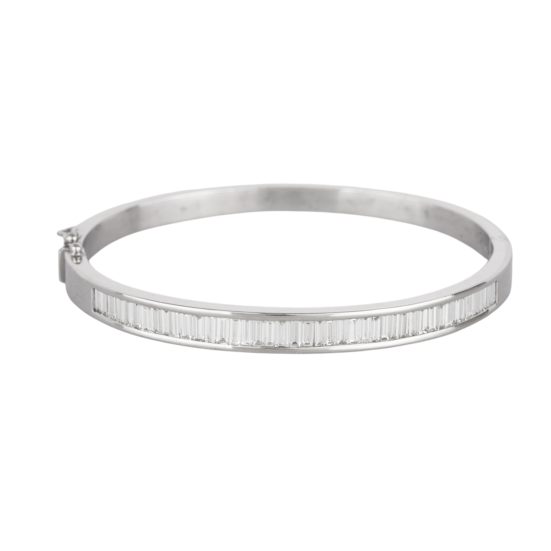 Pulseira de ouro branco com 4,00ct de diamantes G/VS e 25,6g. Medida 18cm.