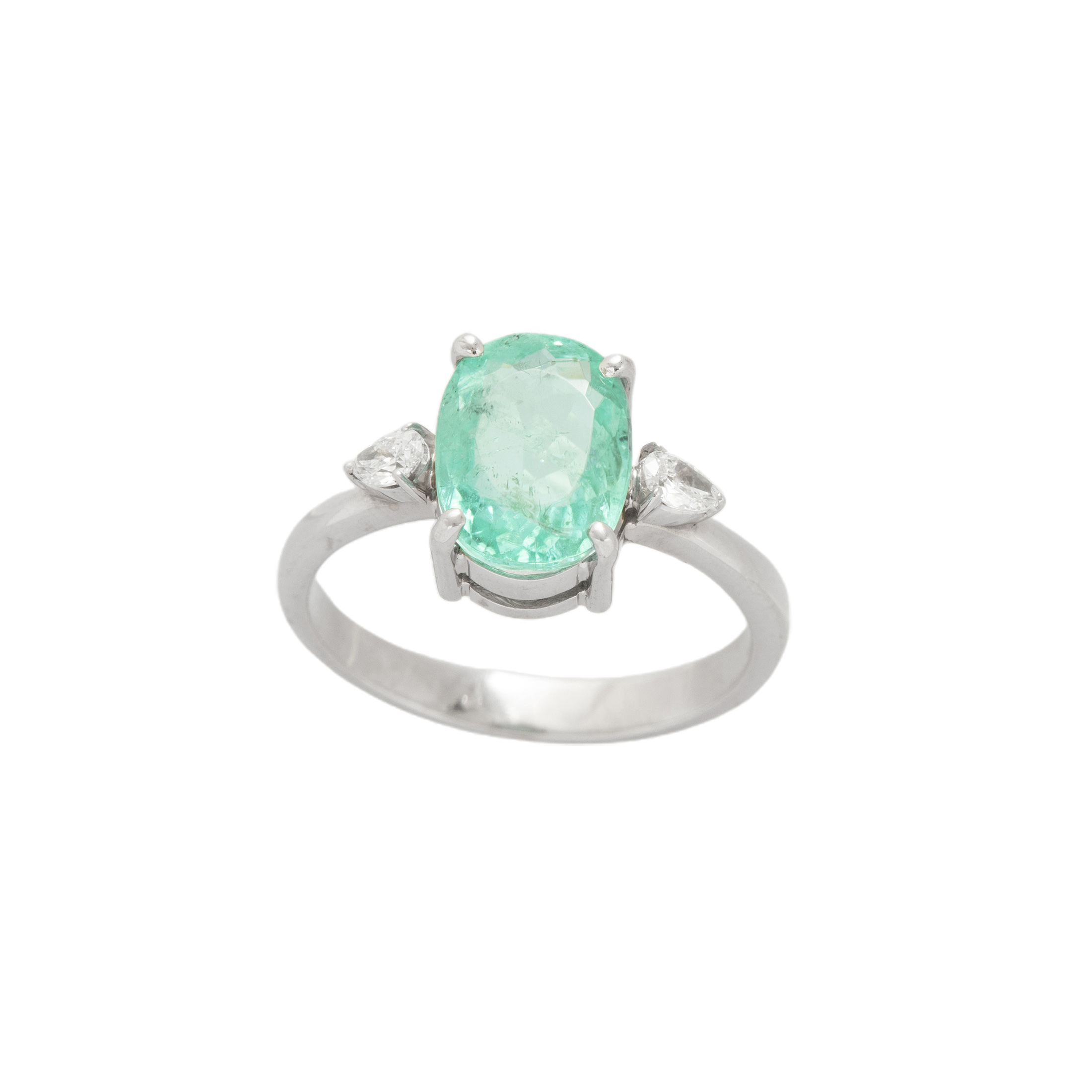 Anel de ouro branco com 2,50ct de turmalina paraíba e 0,14ct de diamantes. Medida 16.