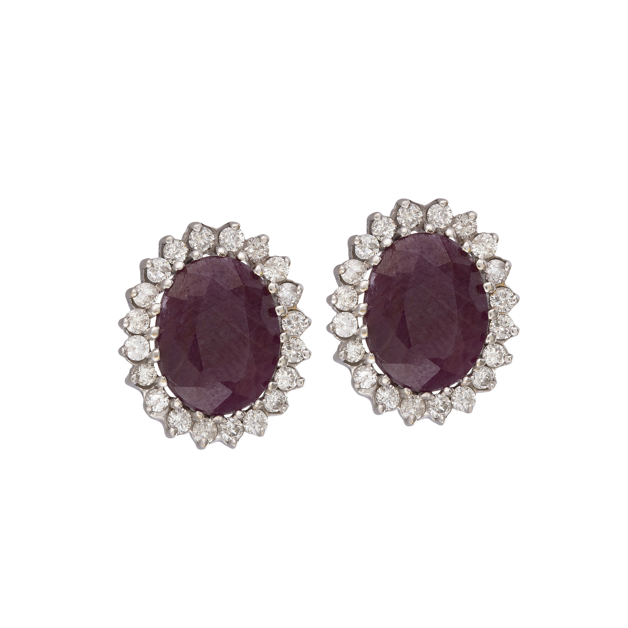 Brinco de ouro branco com 8,40ct de rubi, 1,60ct de brilhantes e 6,8g. Medida 1,8cm.